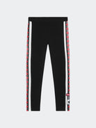 Einfarbige Hose aus weicher Stretch-Baumwolle mit seitlichem Band und aufgenähter Logo-Plakette unten