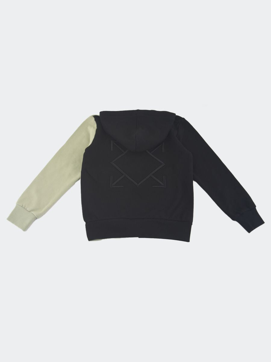 Zweifarbiges, geschlossenes Sweatshirt mit Reflex-Reißverschlusstaschen und Logo-Dekoration auf der Herzseite. Gerippte Bündchen an Ärmeln und Saum sowie Kordel zur Verstellung der Kapuze