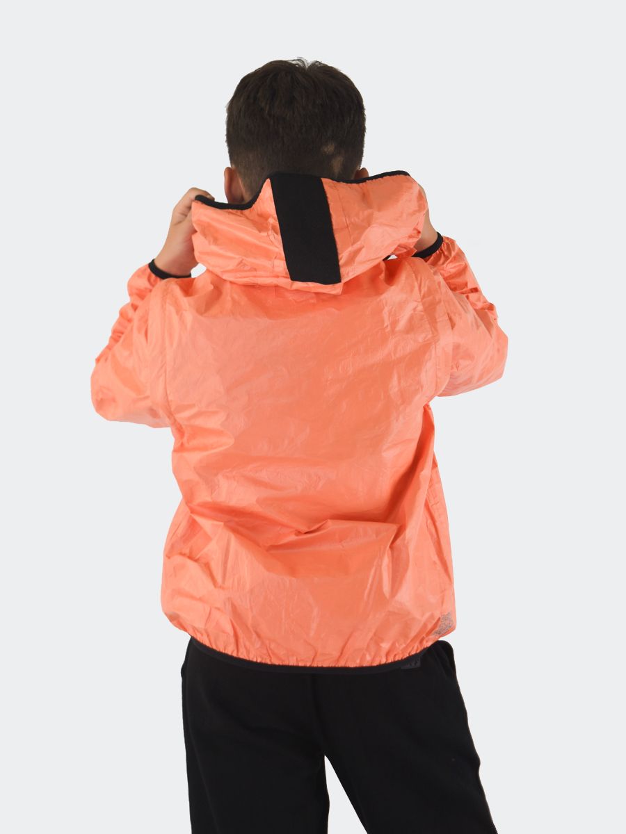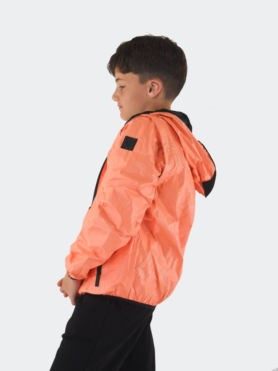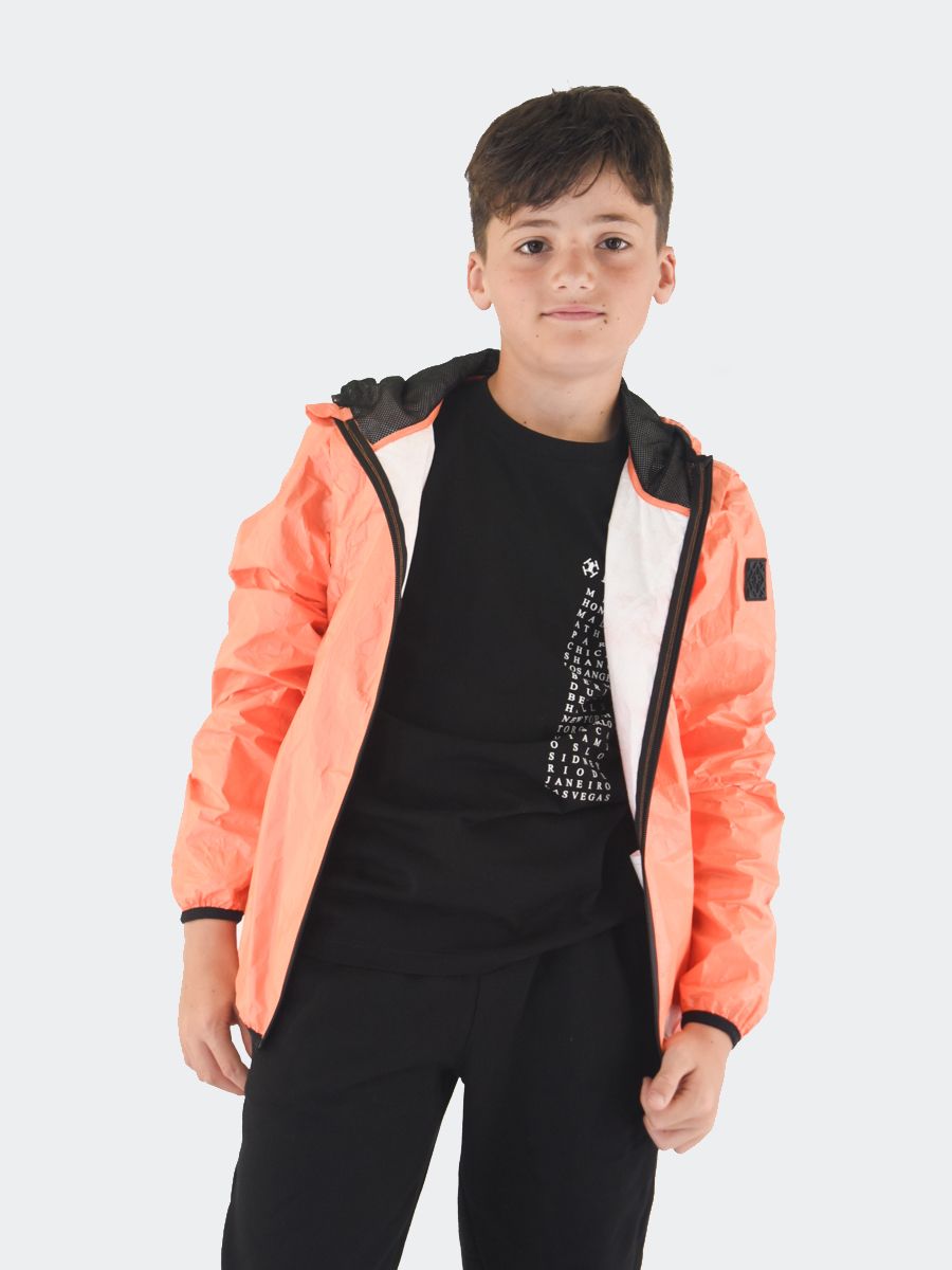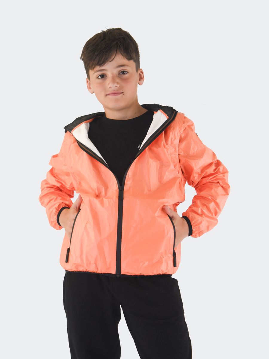 Einfarbige Tyvek-Jacke mit Kapuze, durchgehendem Reißverschluss und Reißverschlusstaschen vorne. Groghè-Detail auf der Kapuze. Hergestellt aus superleichtem Material dank der Verbindung von Technologie und ökologischer Nachhaltigkeit, hypoallergen und wärmeisolierend. 2 Teile in 1 mit abnehmbaren Reißverschlussärmeln. Atmungsaktiv, antibakteriell, winddicht. Das vollständig recycelte, staub- und reißfeste Material mit schnell trocknendem Farbdruck auf Wasserbasis