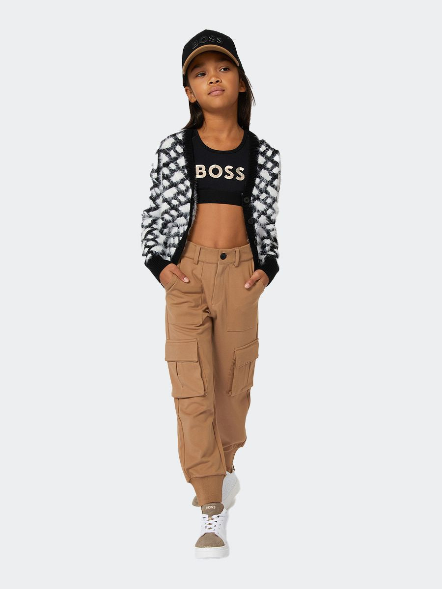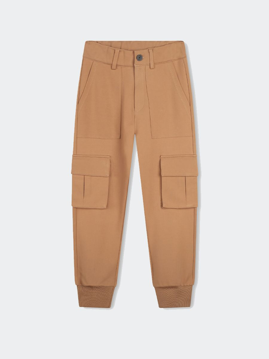 Einfarbige Hose mit Cargotaschen und elastischen Rippen am Saum