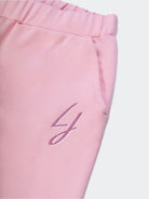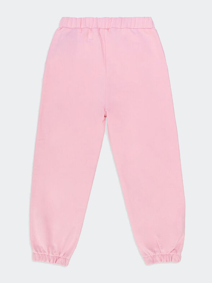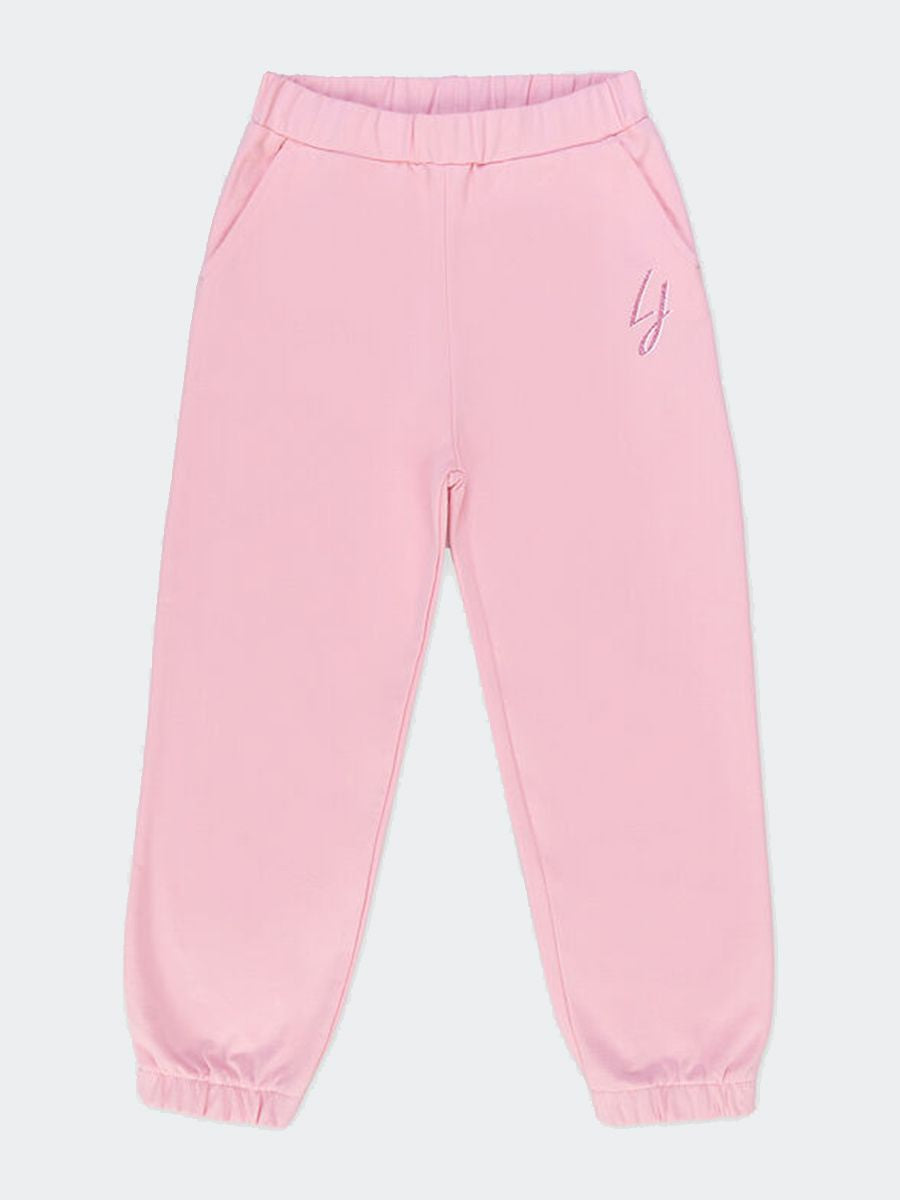 Hose mit zwei Vordertaschen und elastischem Bund. Einfarbig mit elastischem Beinabschluss. Glitzerlogo auf der Vorderseite
