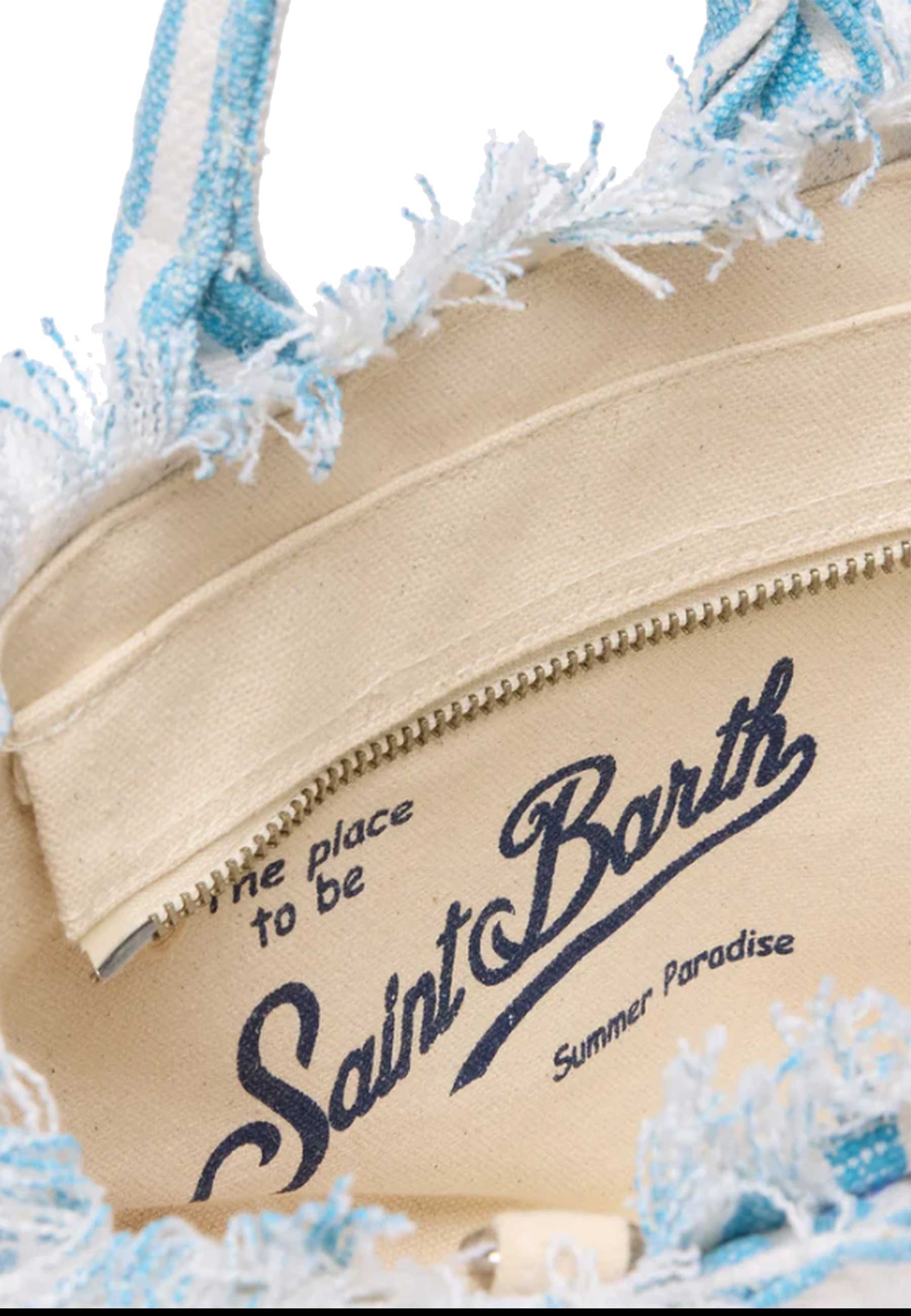 Borsa Mini Vanity in 100% LINO rigato bianco azzurro con Stampa logo blu