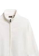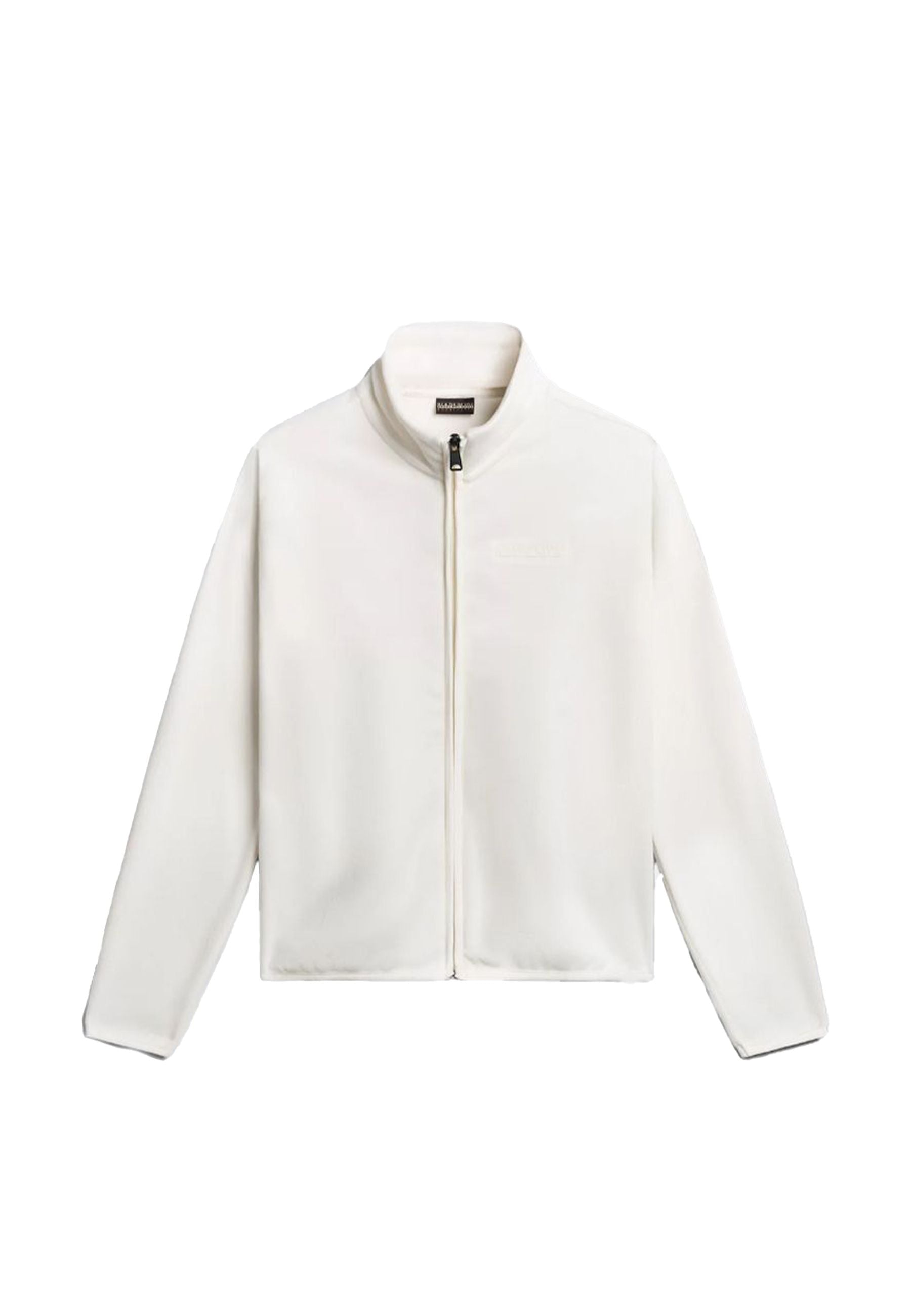 Warme und umhüllende Fleecejacke mit hohem Kragen. Durchgehender Reißverschluss und Gummizug an Bündchen und Saum