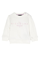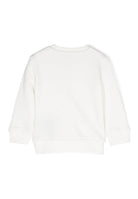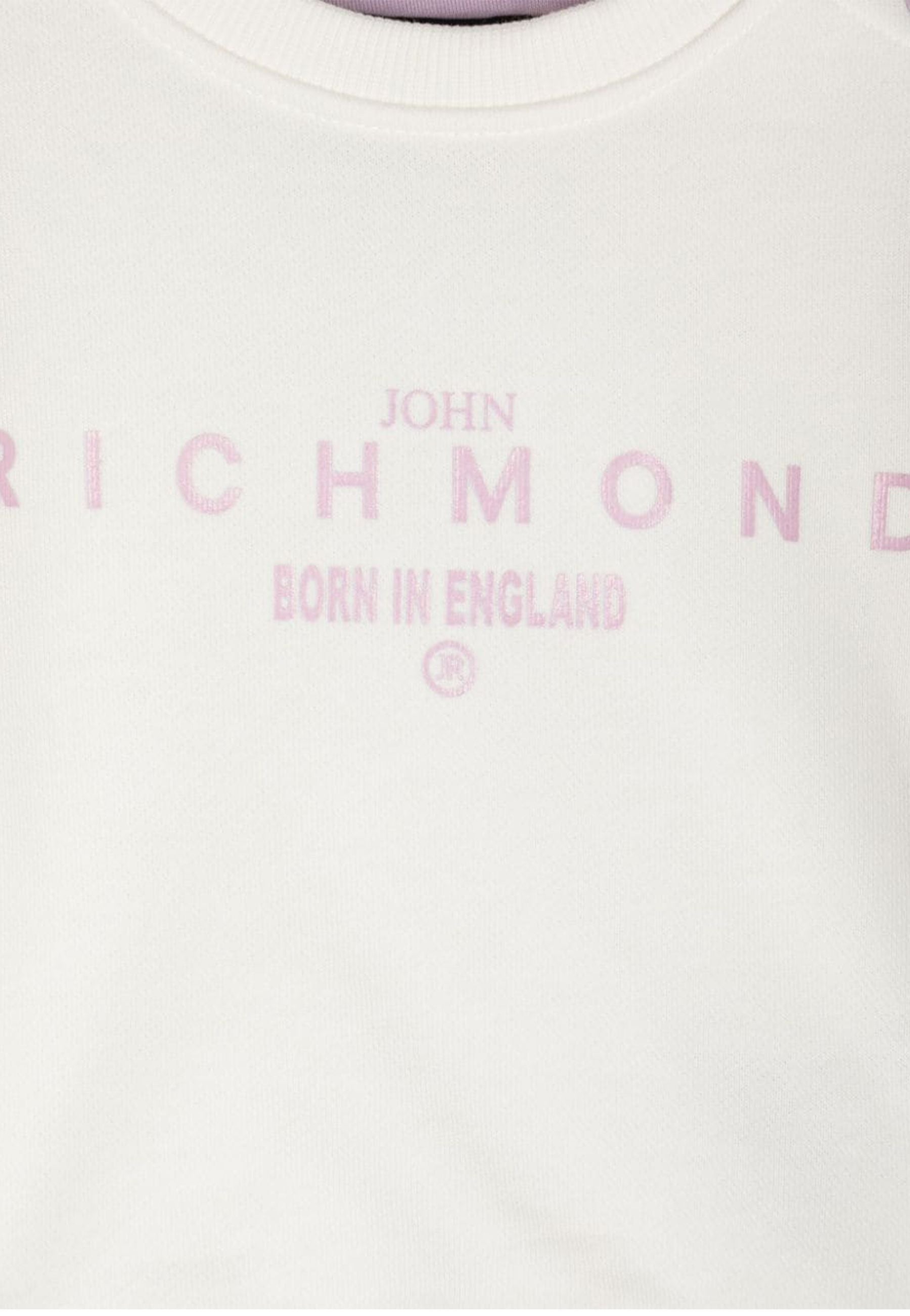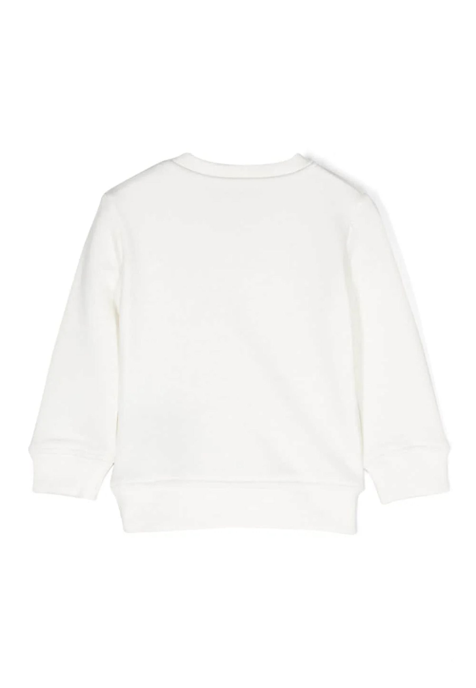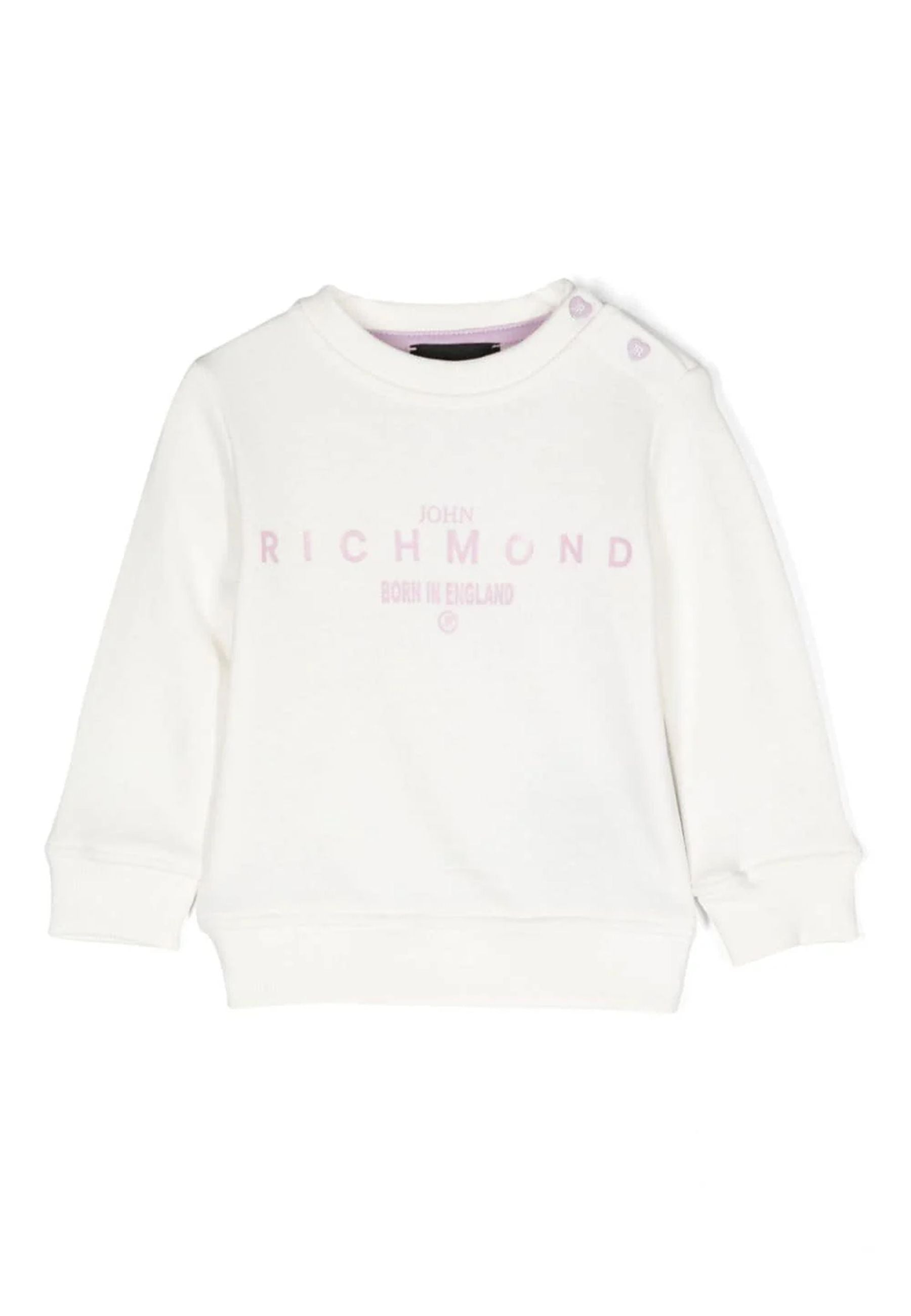 Kurzes Sweatshirt für Mädchen mit Rundhalsausschnitt und einfarbig. Gerippte Bündchen und Saum mit Logoschriftzug vorne. Druckknopfverschluss auf der Rückseite