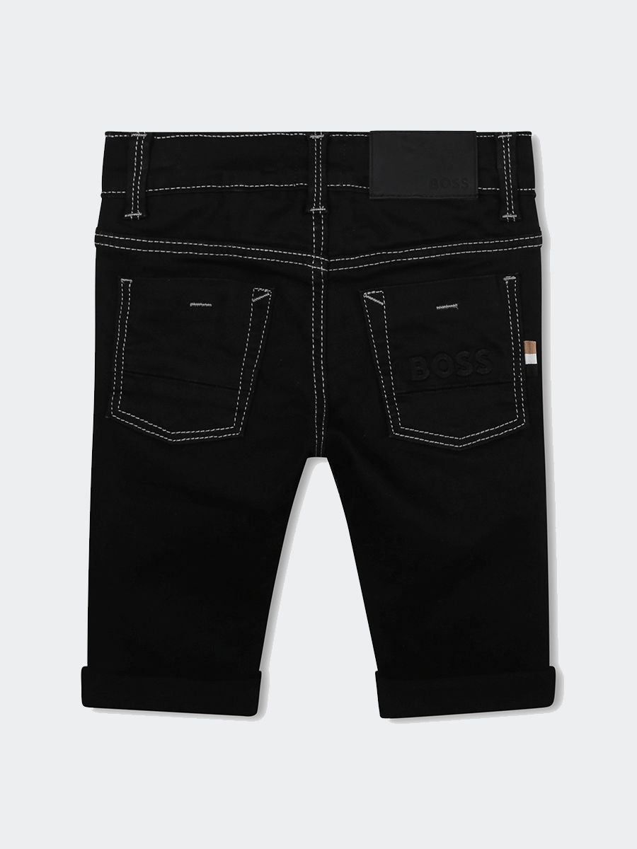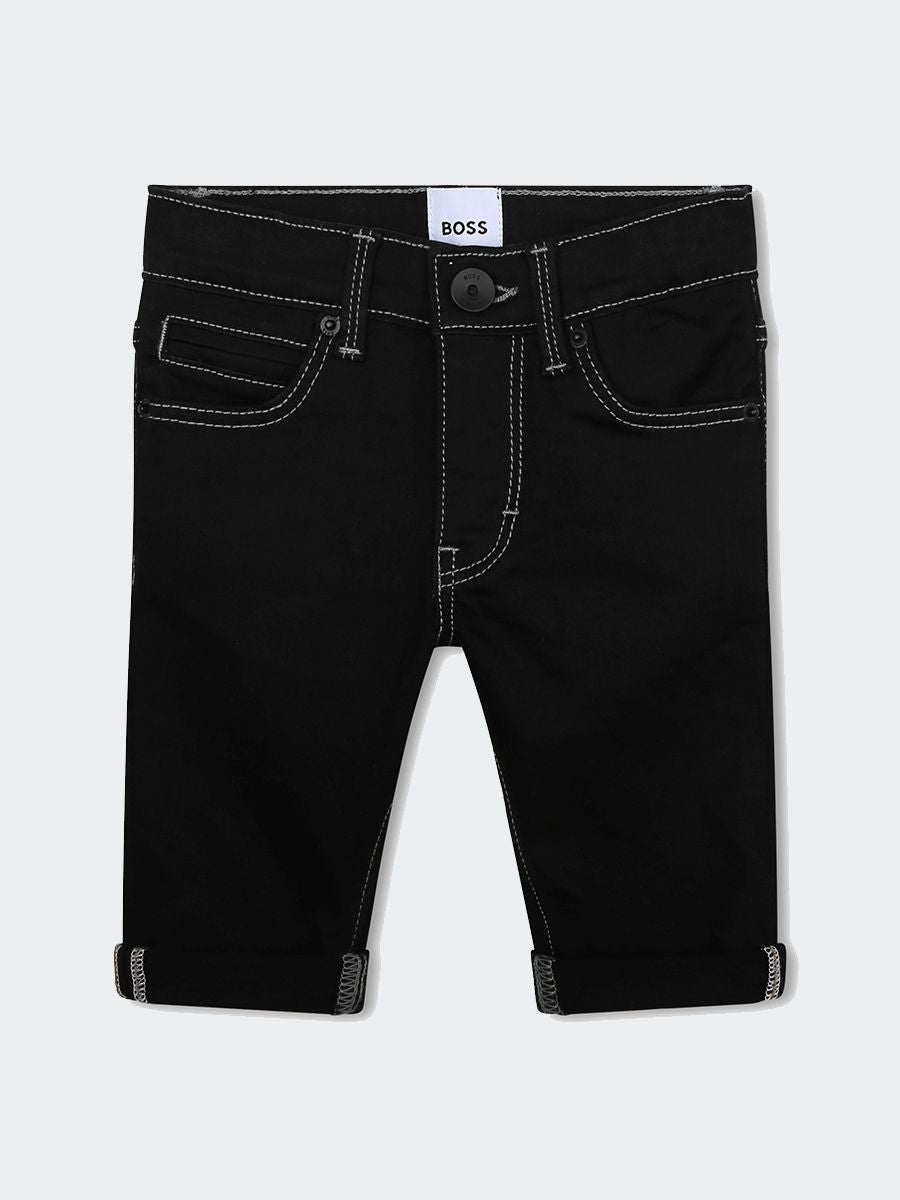 Five-Pocket-Jeans aus dunklem Denim mit kontrastfarbenen Nähten und Umschlag am Saum