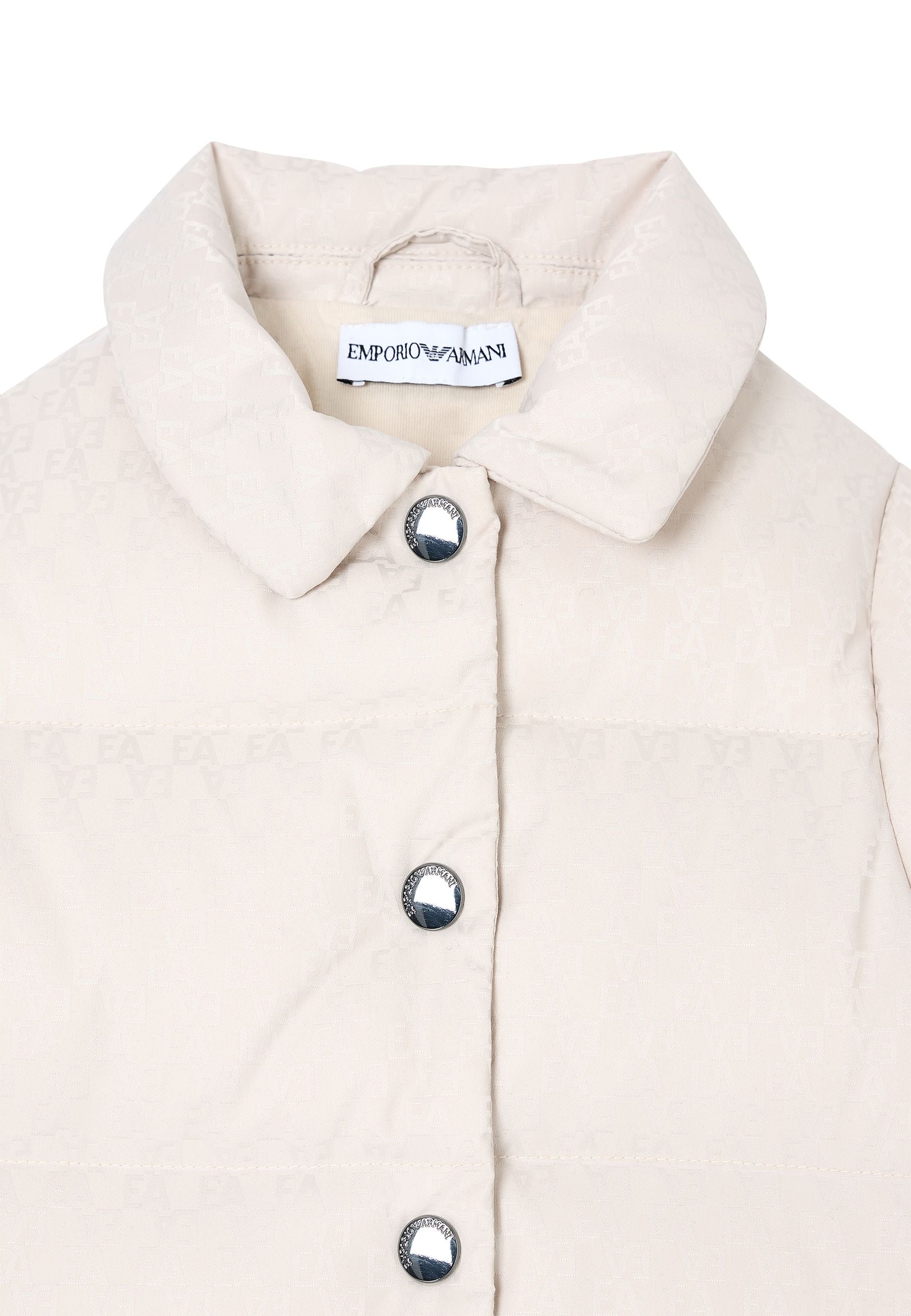 Piumino in nylon elegante e resistente con logo lettering jacquard all over imbottitura in piuma d’anatra bianca riciclata chiusura con automatici logati maniche lunghe design raffinato stile contemporaneo comfort termico esclusivo distribuito da Bimbivip partner storico affidabile riconosciuto in Europa punto di riferimento per le famiglie alla ricerca di qualità originalità e garanzia di marchi prestigiosi esperienza d’acquisto sicura soddisfacente e appagante