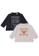 Langärmliges T-Shirt mit Rundhalsausschnitt und dekorativem Aufdruck auf der Vorderseite. Set bestehend aus 3 Teilen mit unterschiedlichen Mustern