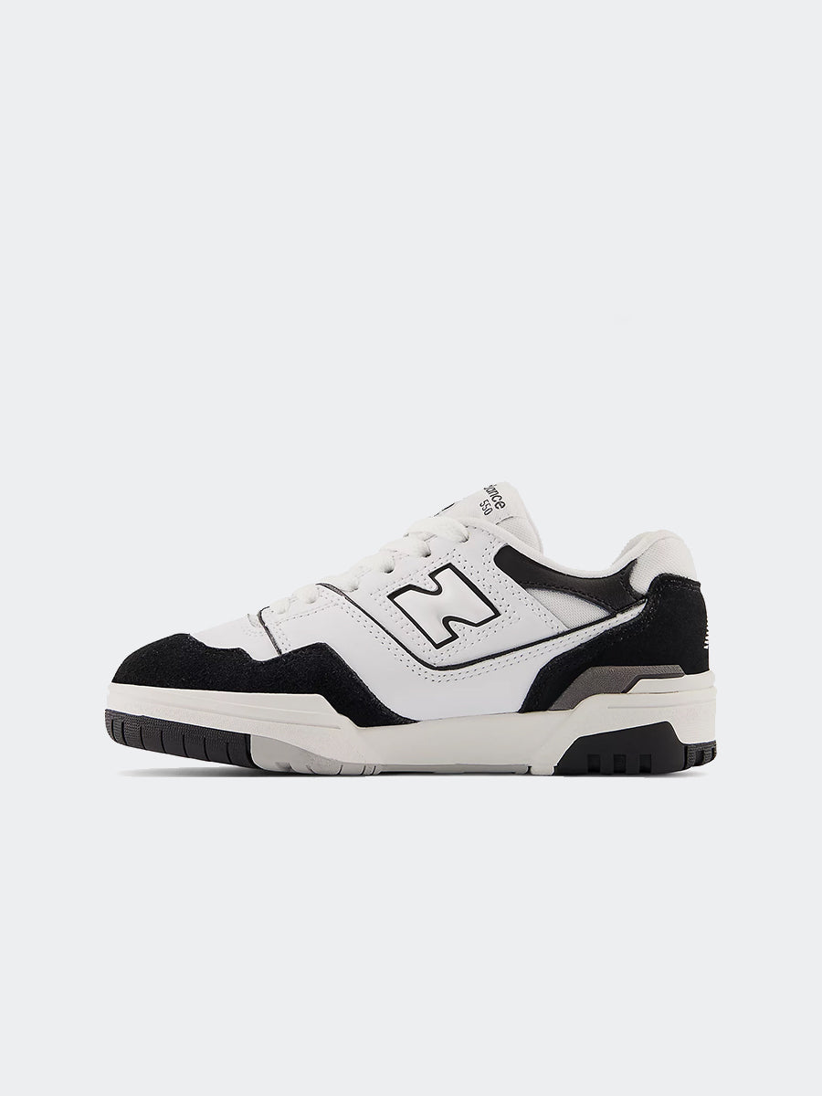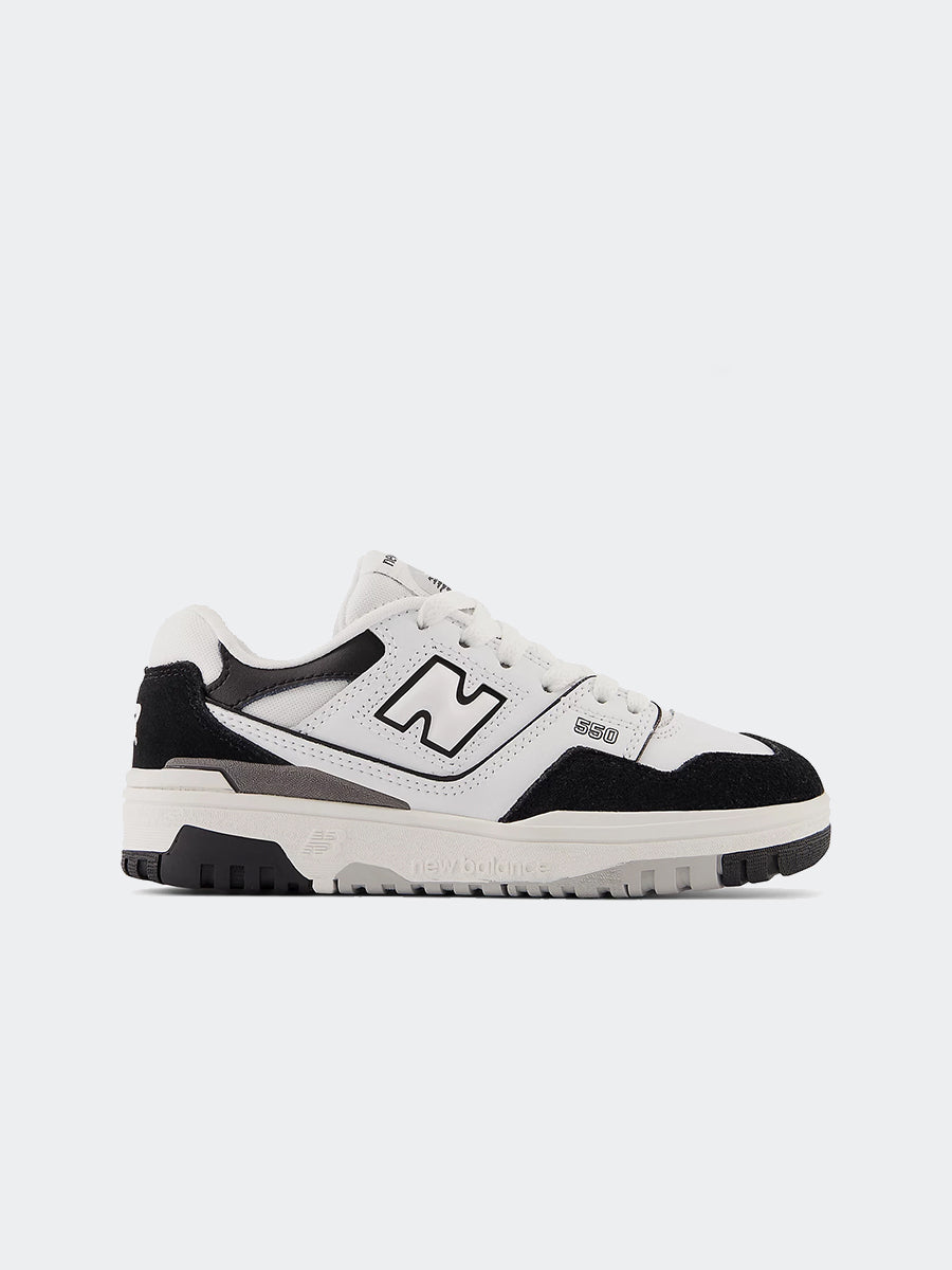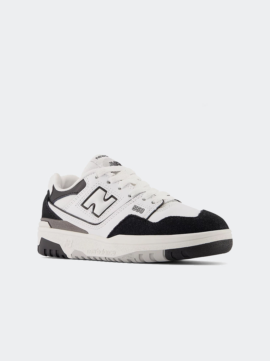 Die ikonischen Sneaker der Marke mit einer niedrigen und aerodynamischen Silhouette des 550 sind eine klare Version des Obermaterials aus synthetischem Wildleder. Spitzenverschluss