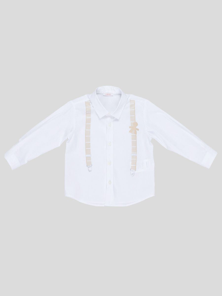 Camicia classica manica lunga tinta unita con stampa bretelle frontali
