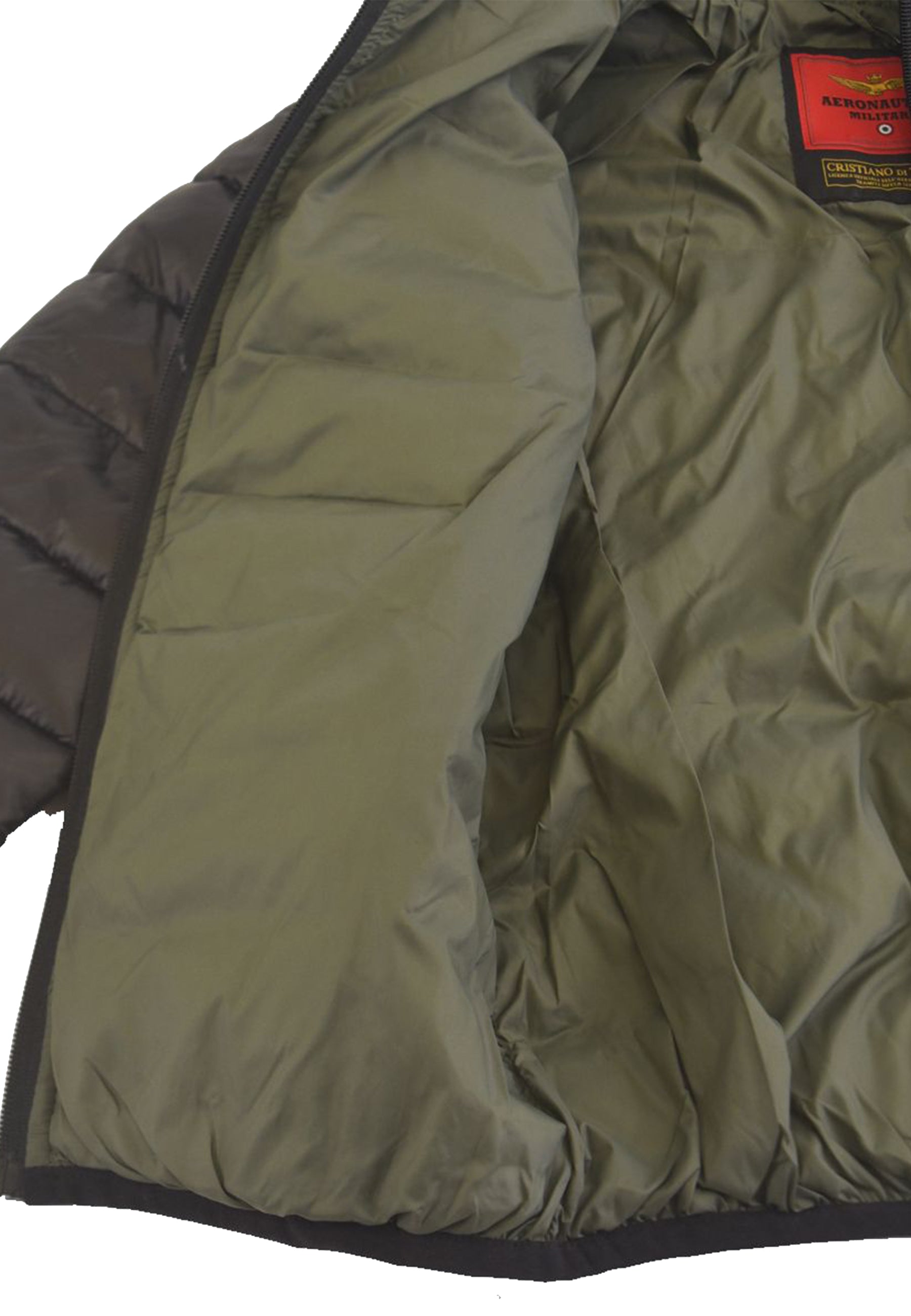 Giubbino Bomber foderato in nylon trapuntato con collo in ecopelliccia staccabile. Tasche sul petto a Zip con patch Logo e sul fondo con apertura in velcro. Costina su polsi e fondo