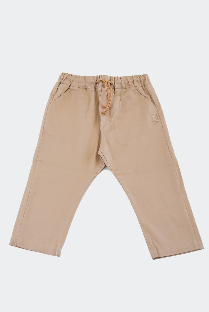 Pantalone elasticizzato tinta unita a cinque tasche a taglio dritto