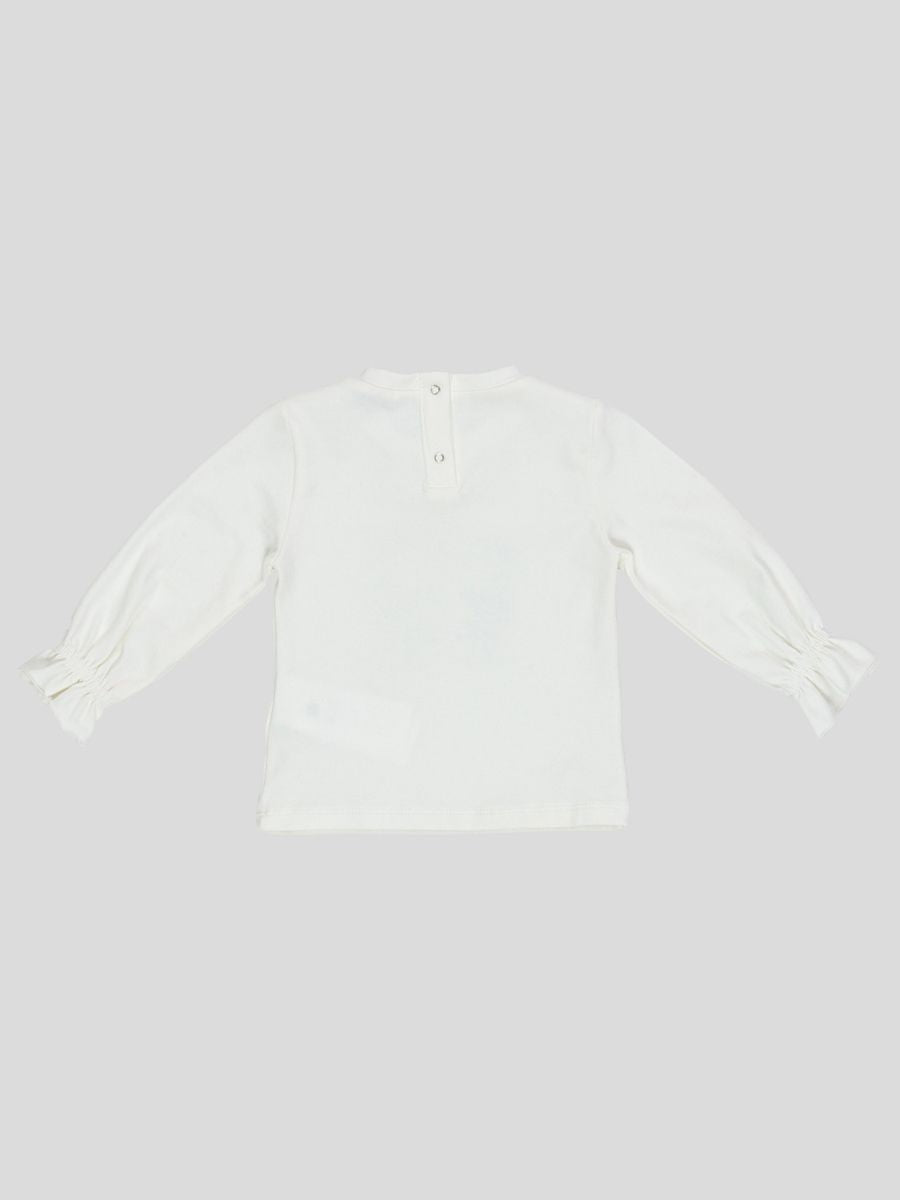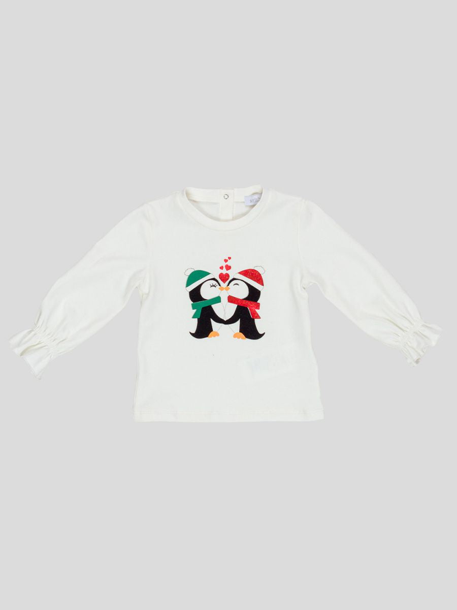 T-shirt girocollo manica lunga con stampa Pinguini innamorati. Polsi con elastico.bottoni a pressione nel retro collo