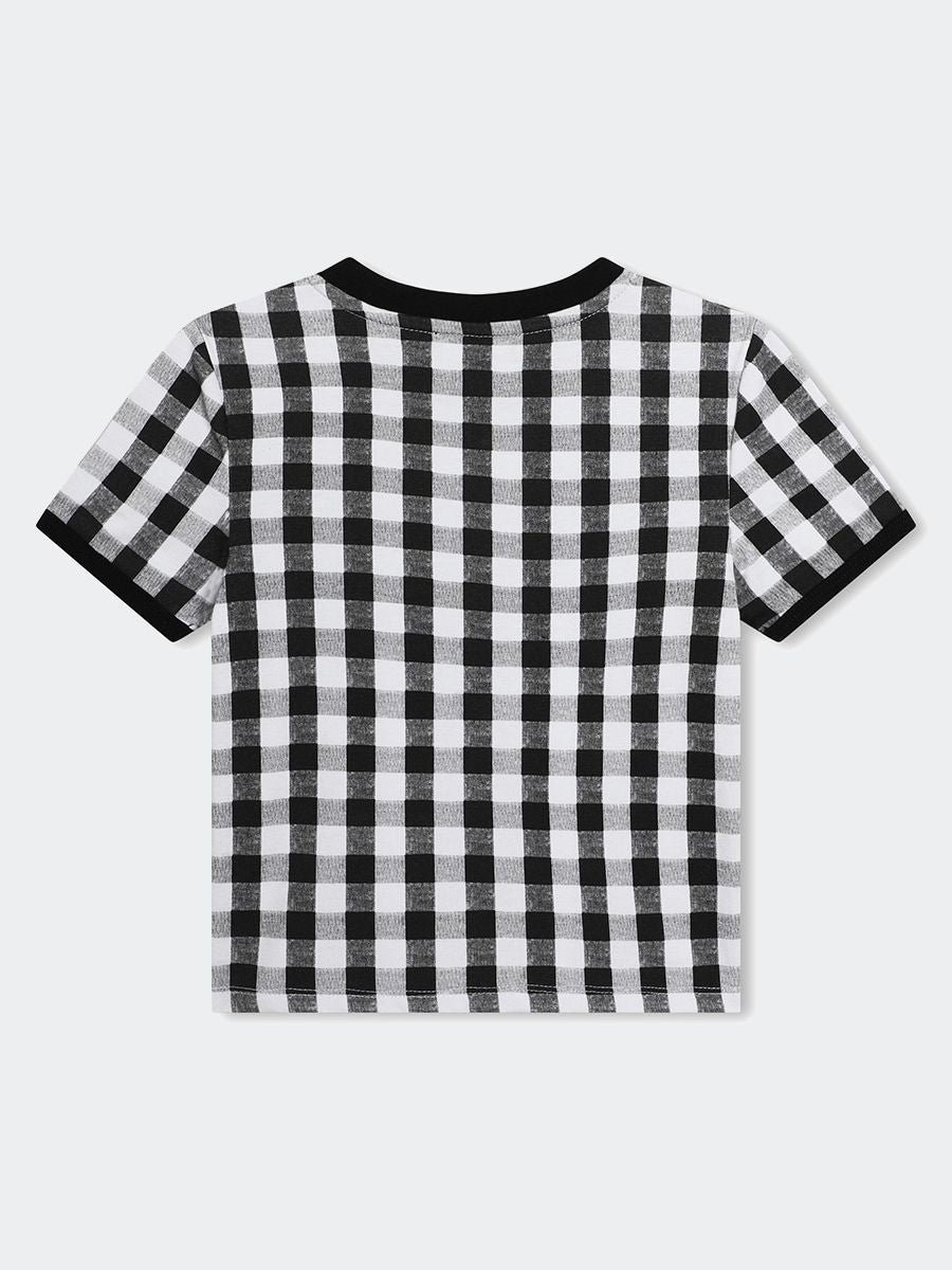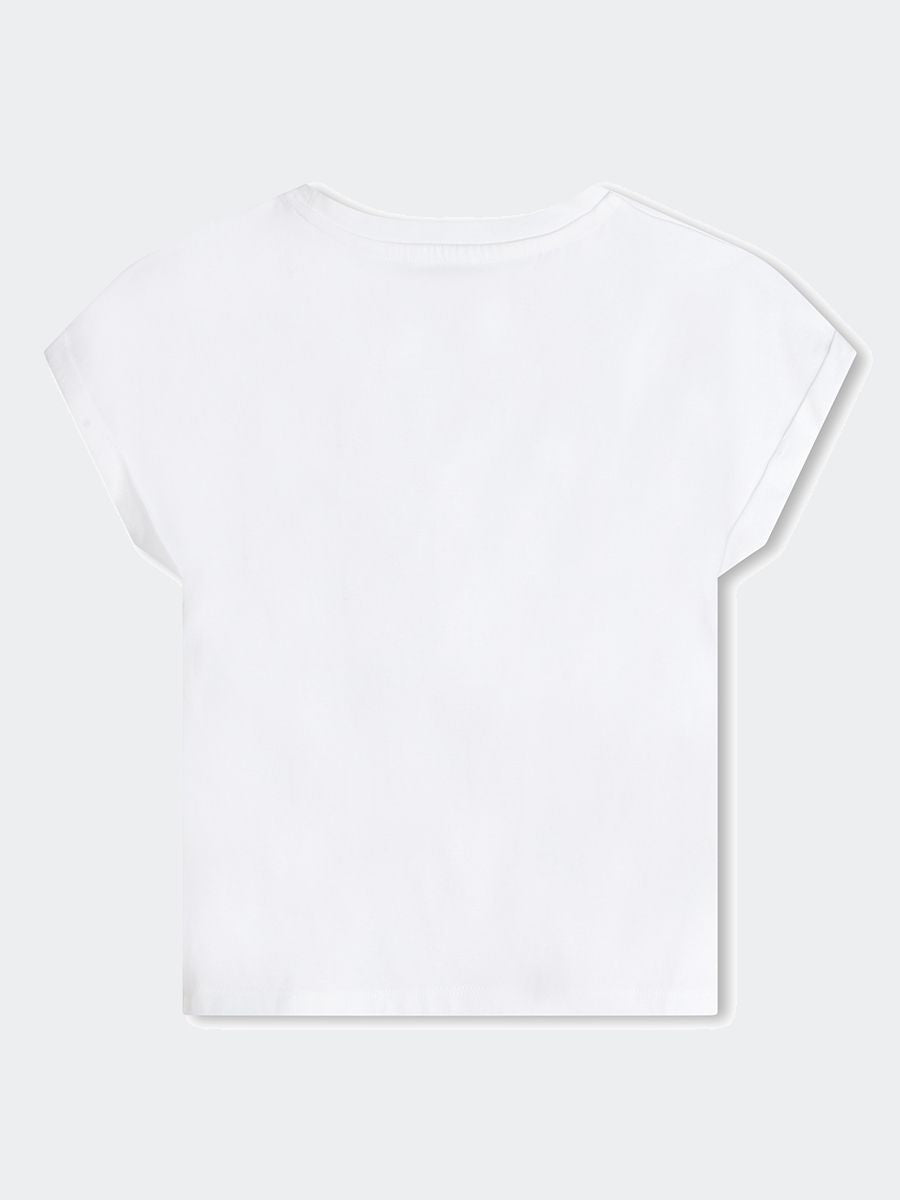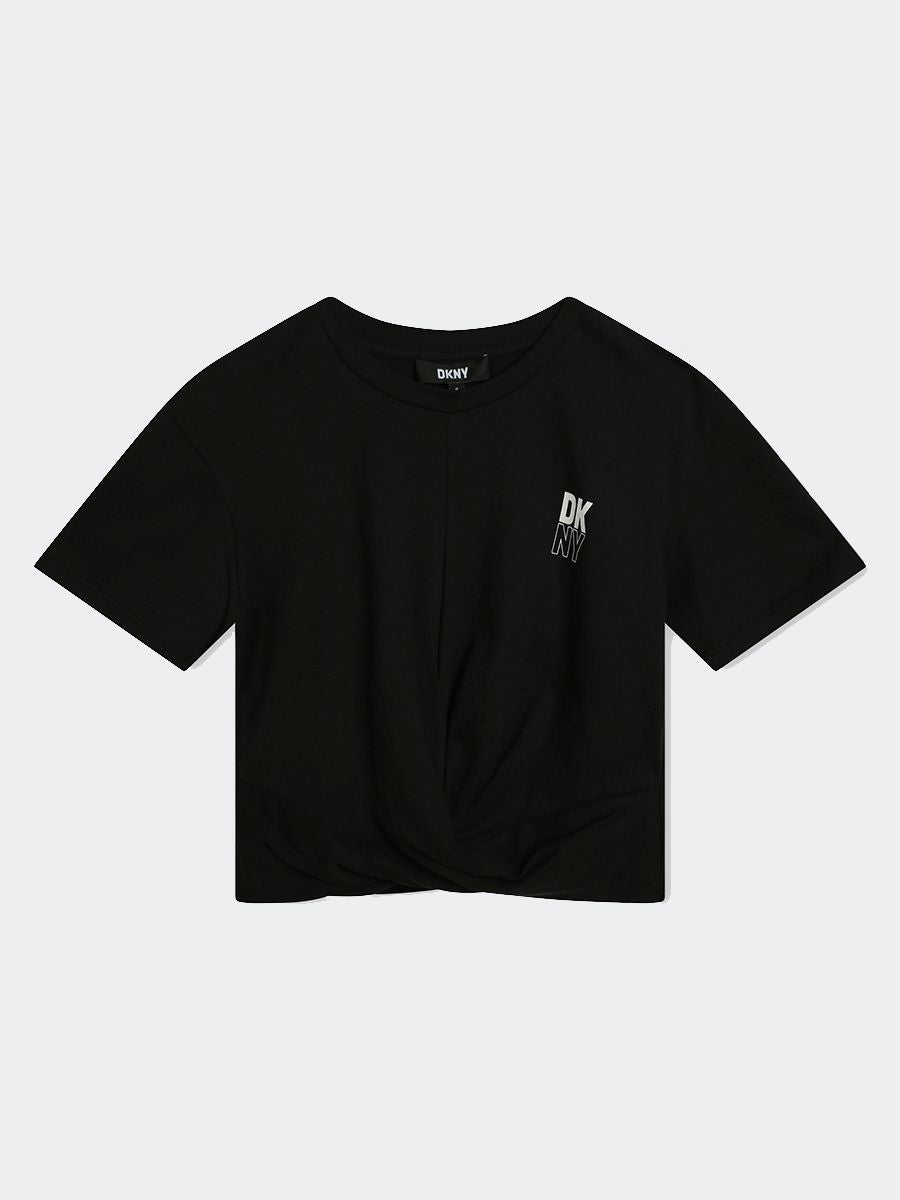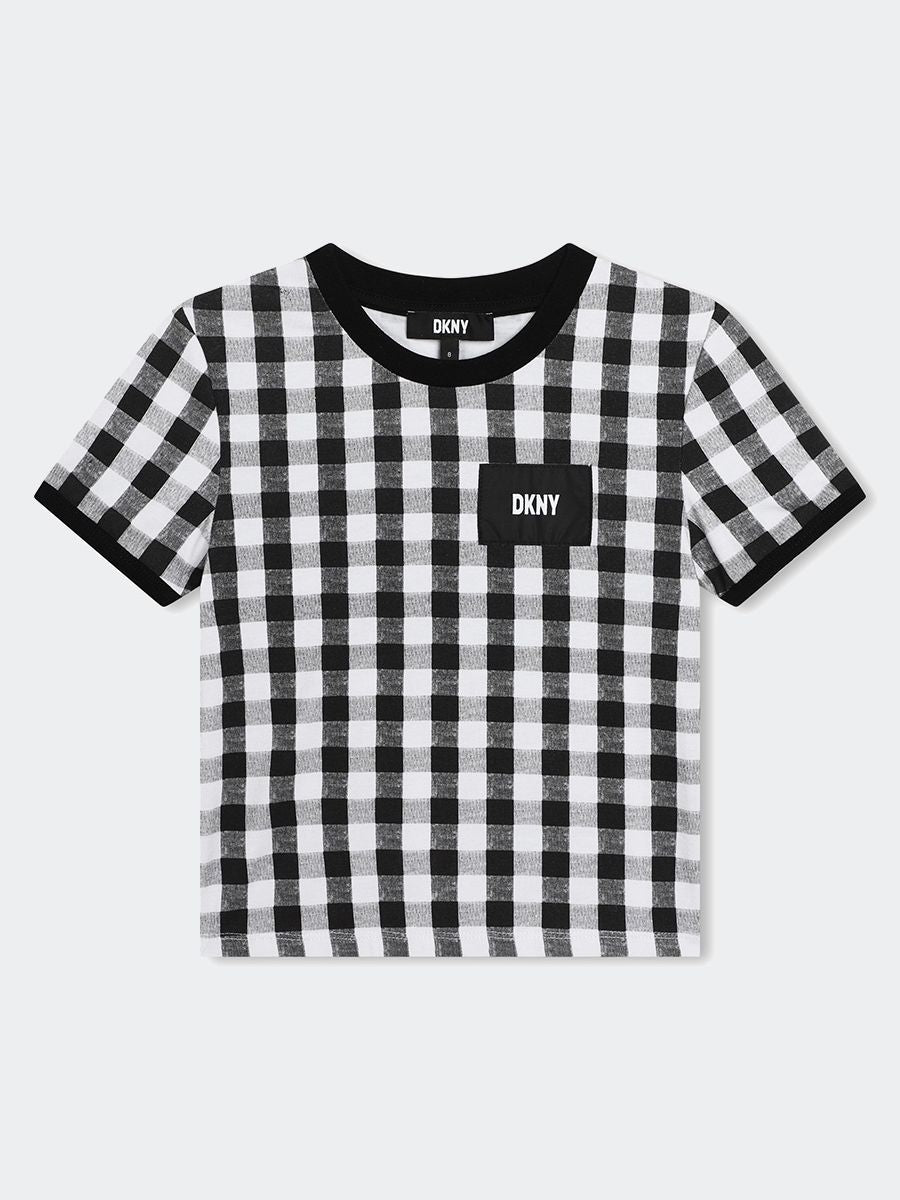 T-shirt T-shirt a maniche corte in jersey 94% cotone da agricoltura biologica e 6% elastan. Illustrazione DKNY sul davanti con borchie quadrate.