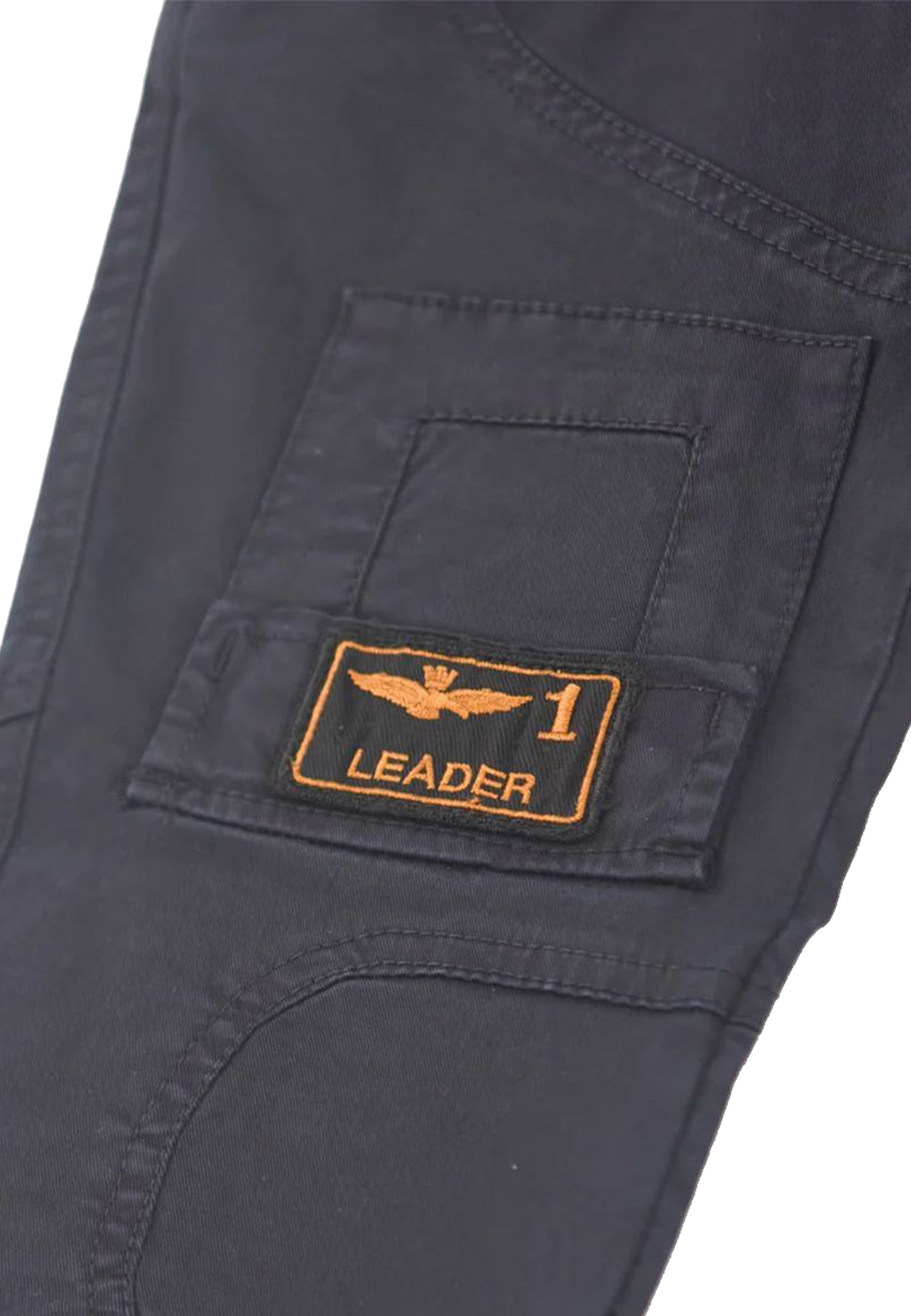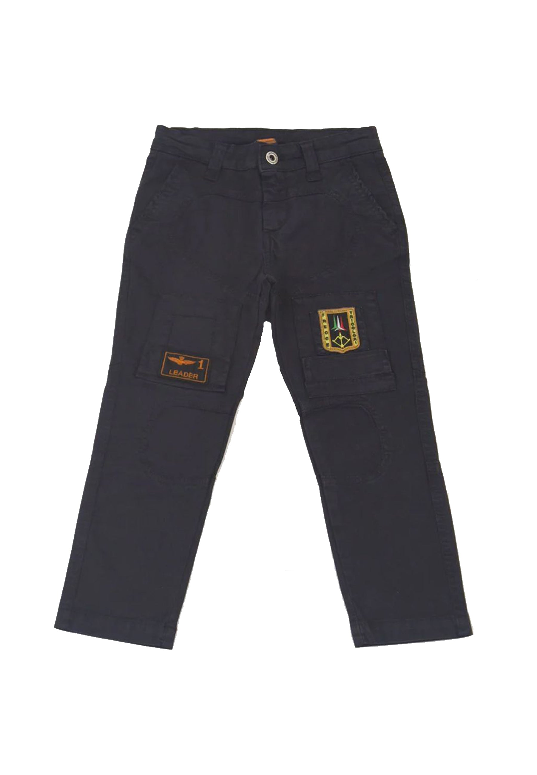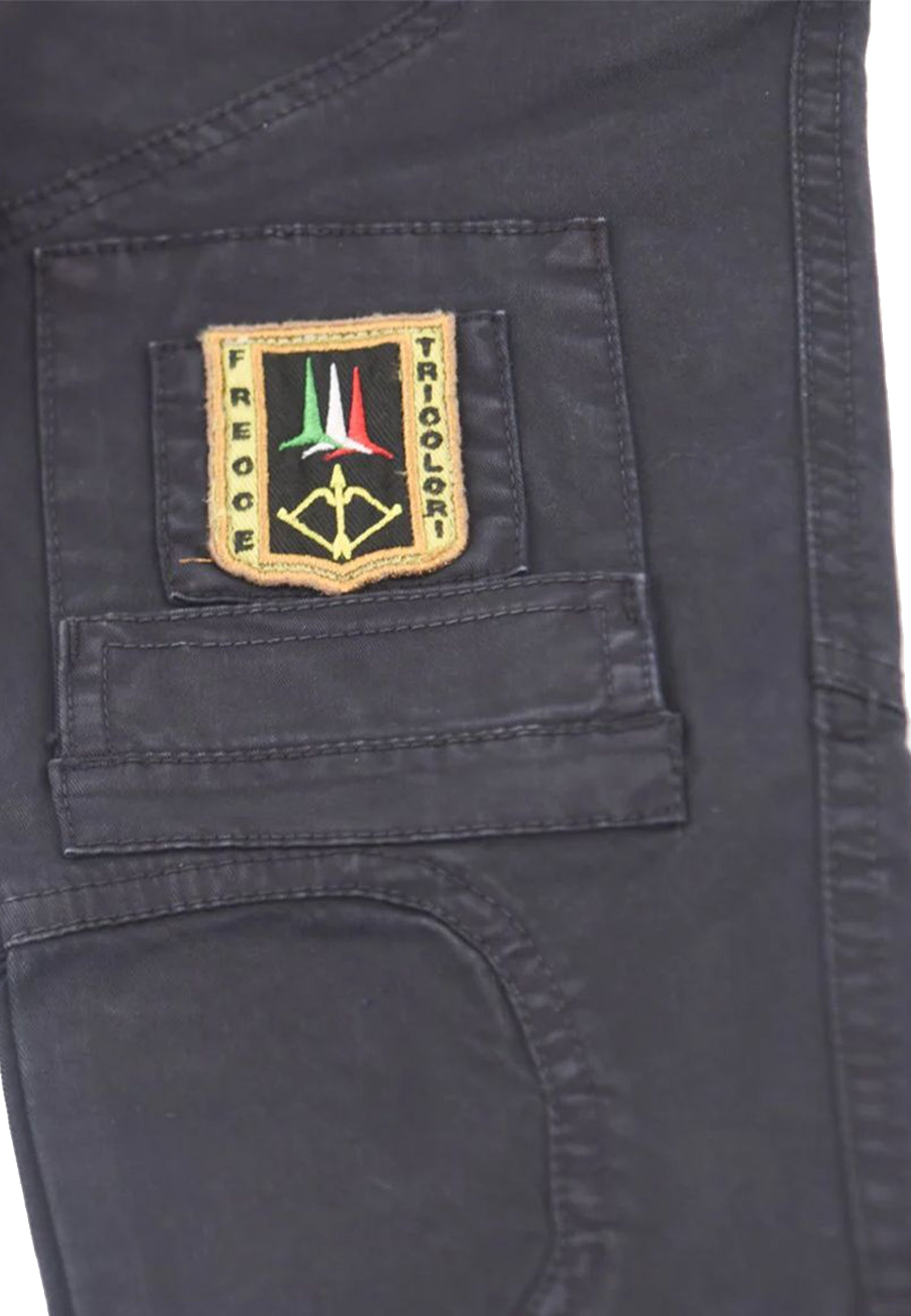 Pantalone modello tinta unita in cotone elasticizzato tasche applicate sopra ginocchio con patch bandiera Logo frecce