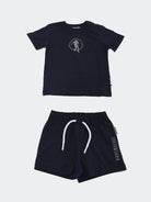 Kurzarm-Set mit Rundhalsausschnitt, Frontprint und passenden einfarbigen Shorts