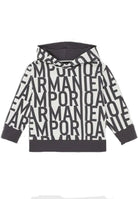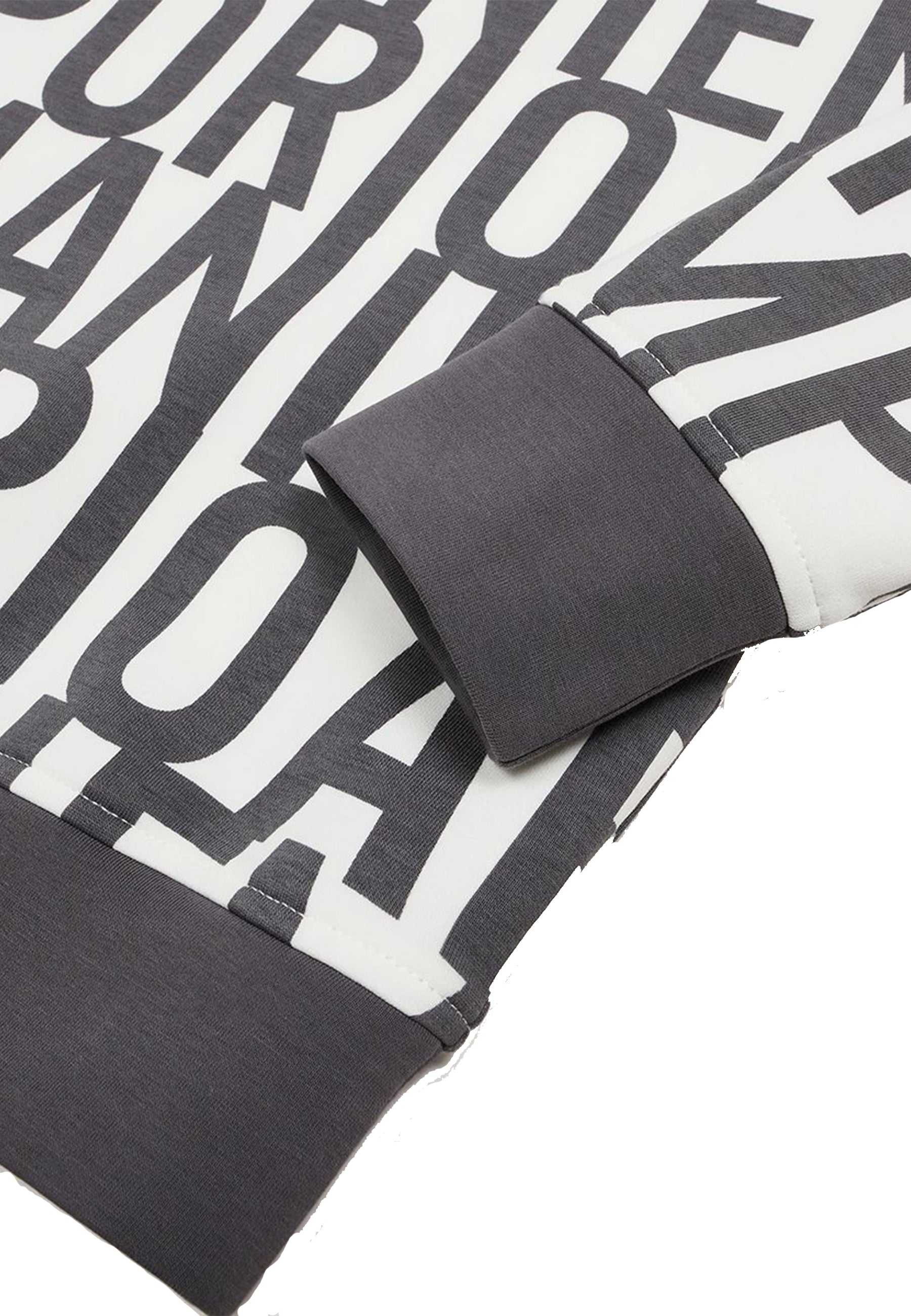 Felpa a doppio jersey con pratico Cappuccio con logo Lettering All over. Polsi e fondo a coste a contrasto colore tinta unita
