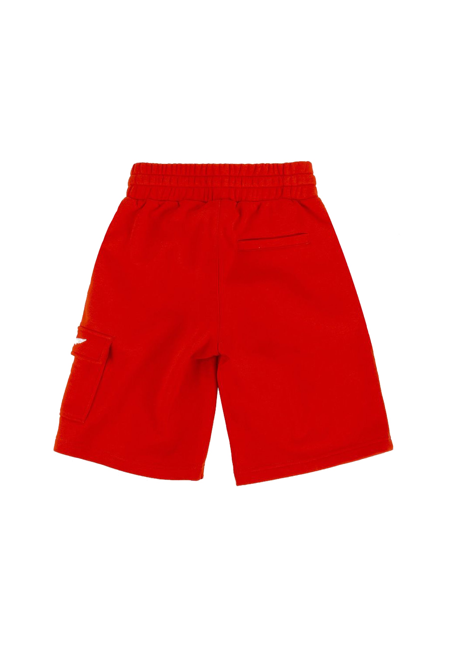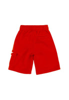 Einfarbige Bermudashorts aus Fleece mit elastischem Bund und verstellbarem Kordelzug. Leistentaschen an den Seiten und hinten. Cargo auf einer Seite bestickt. Vertikaler Druck auf der Vorderseite