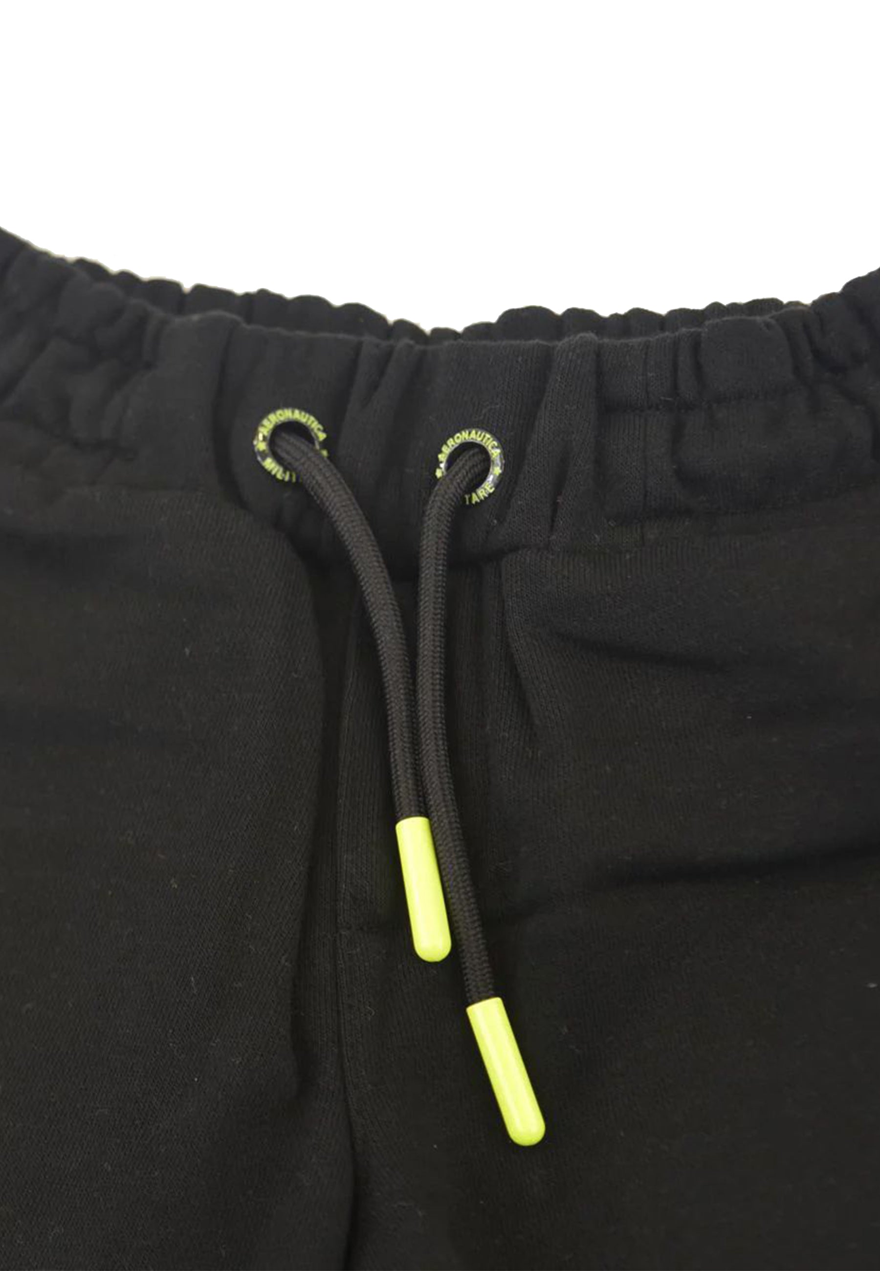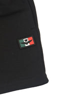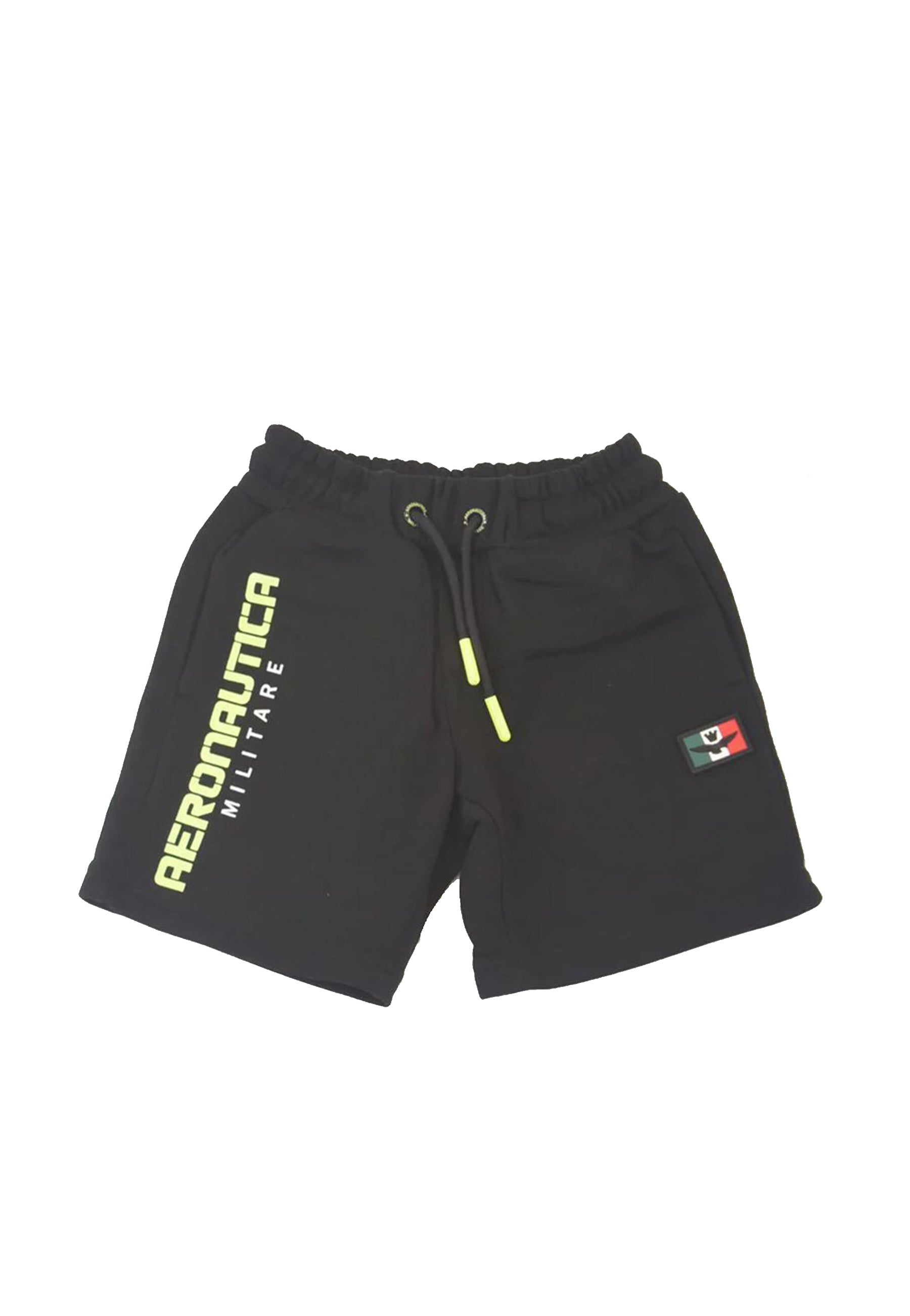 Einfarbige Bermudashorts aus Fleece mit elastischem Bund und verstellbarem Kordelzug. Seitliche Leistentaschen und reflektierende Rückseite. Gestickter Flaggenaufnäher und vertikaler Druck auf der Vorderseite
