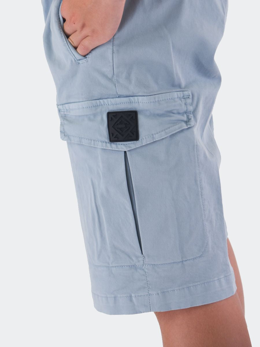 Bermudashorts mit elastischem Bund, verstellbar durch innenliegenden Kordelzug. Logo-Patch auf der linken Cargotasche auf der Maxitasche. Seitliche Vordertaschen