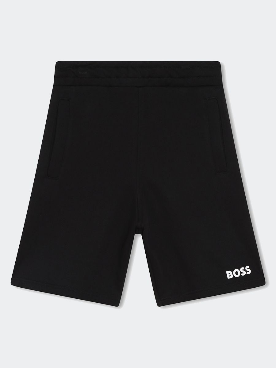Einfarbige Bermudashorts aus leichtem Fleece mit elastischem Bund. Logo-Druck auf der Unterseite