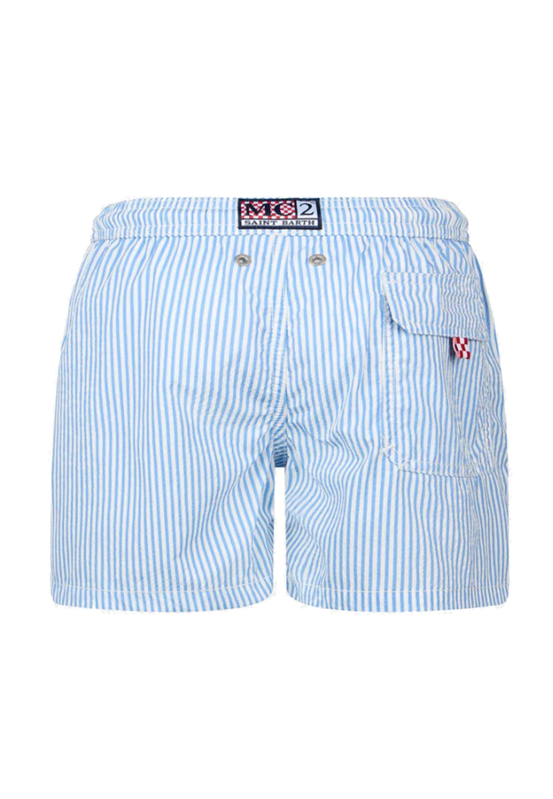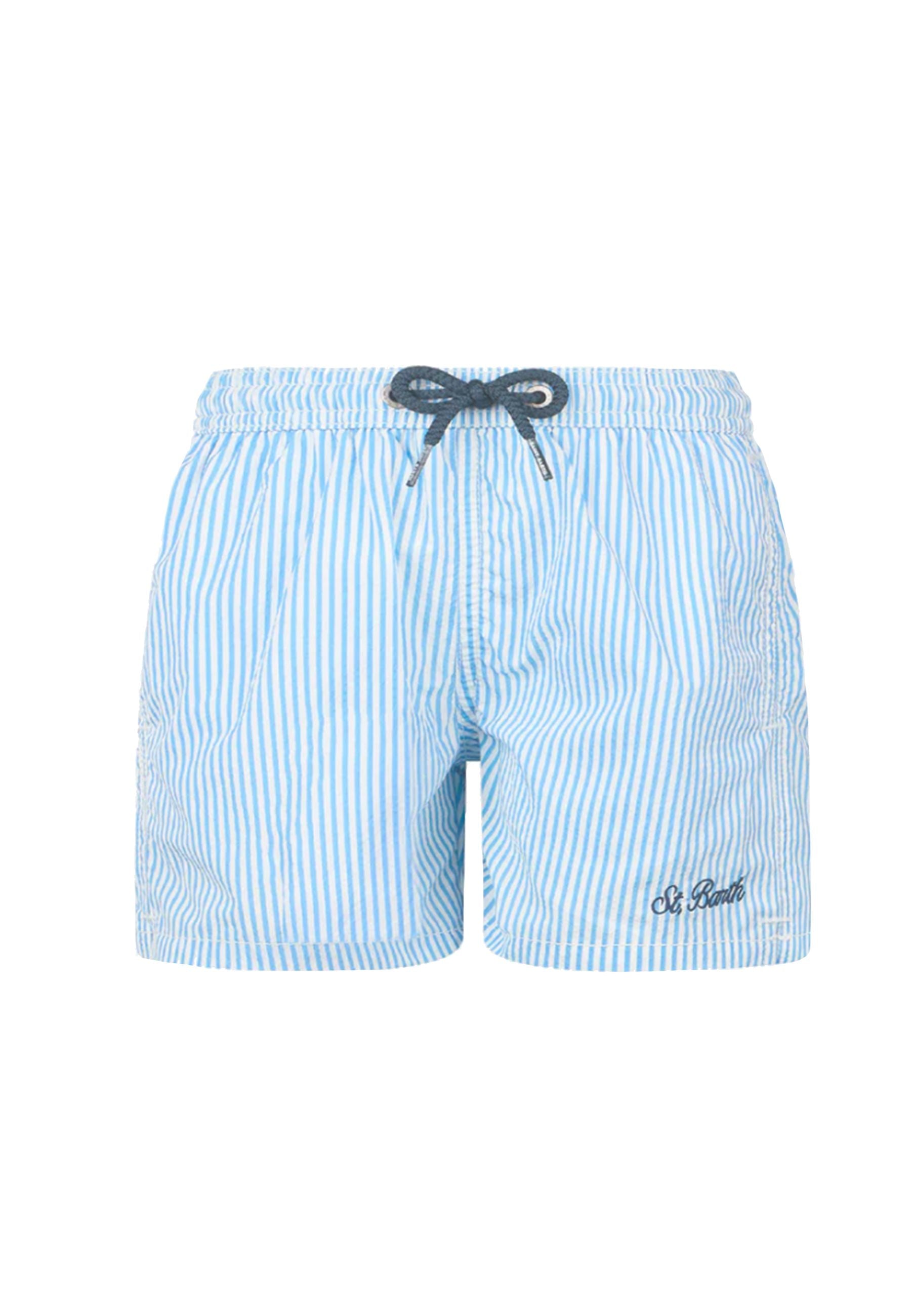 Costume Boxer rigato Bianco e celeste