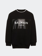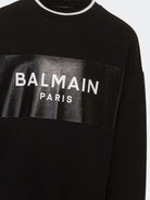 Baumwoll-Sweatshirt mit Logo-Print von Balmain Kids, gekennzeichnet durch optisch weißen, tiefschwarzen Baumwoll-Logo-Print auf der Vorderseite, Rundhalsausschnitt, langen Ärmeln, gerippten Bündchen und Saum sowie geradem Saum