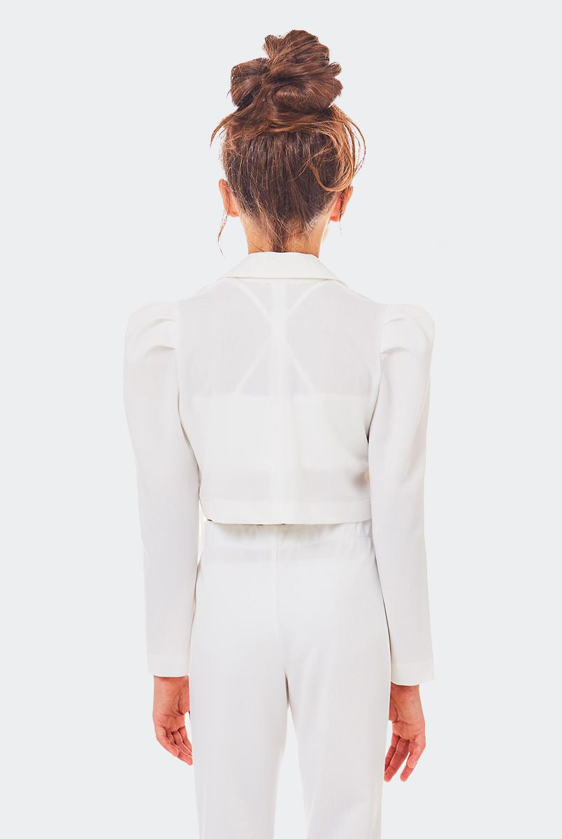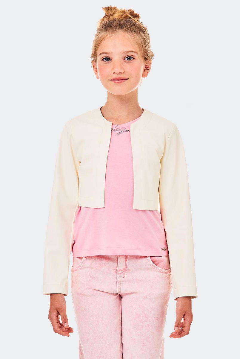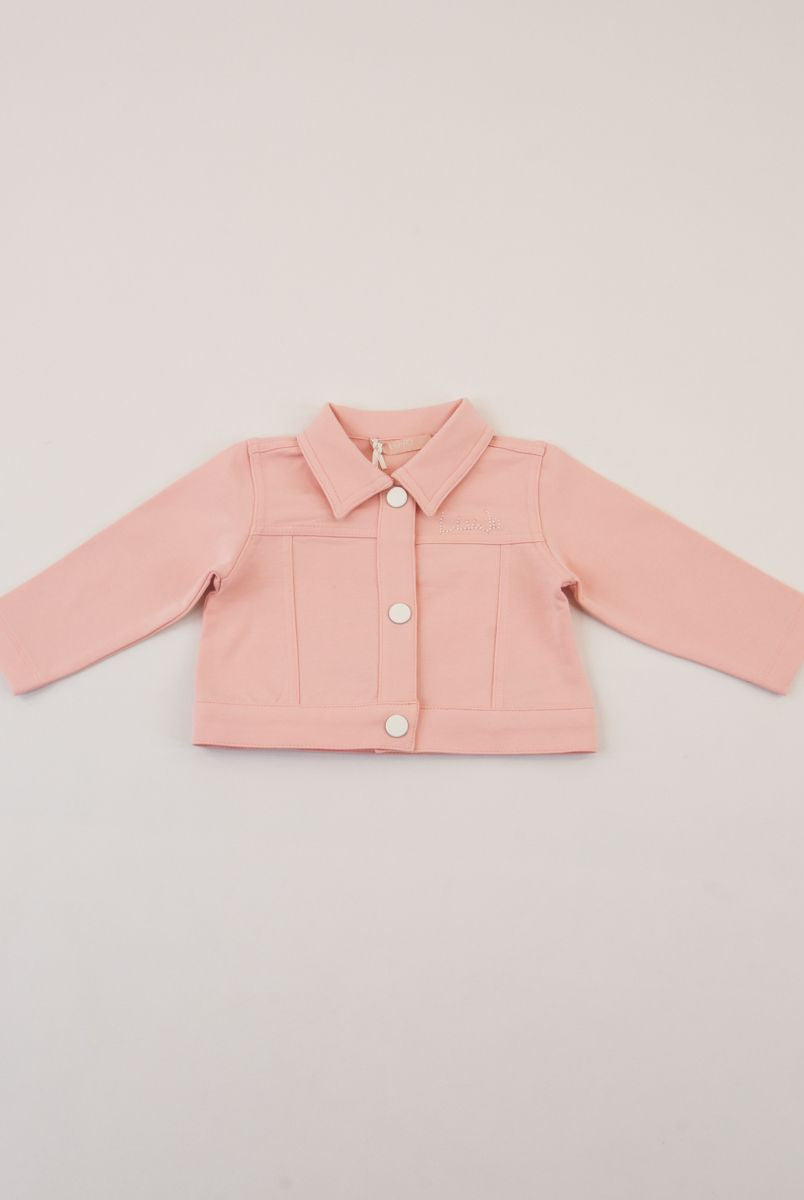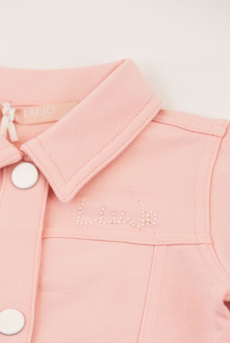 Einfarbige, sportliche Jacke mit zwei Knöpfen, offenen Taschen an der Unterseite und Logoplakette aus Metall