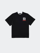 Zweifarbiges Kurzarm-T-Shirt mit Rundhalsausschnitt, Logo auf der Herzseite und offenem Saum