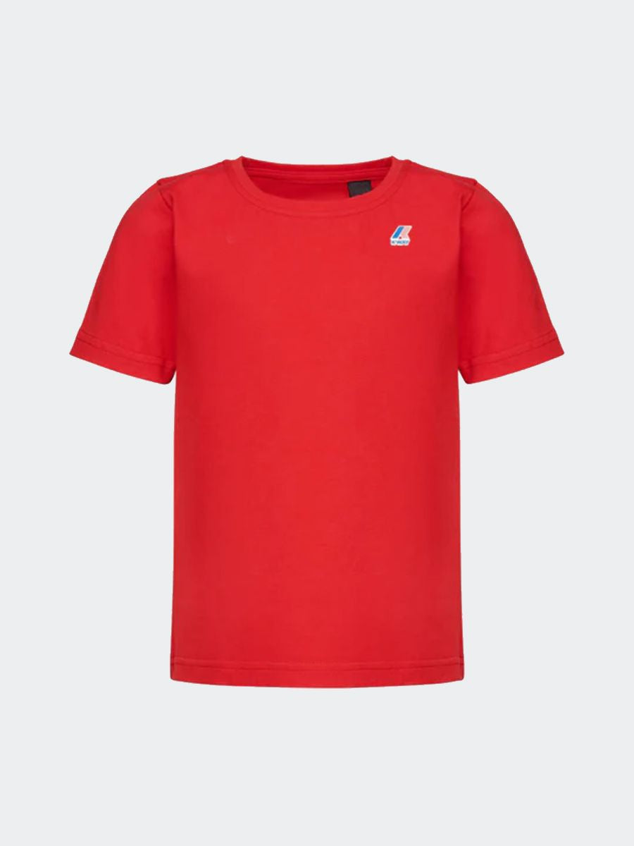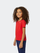 Einfarbiges T-Shirt mit aufgedrucktem Logo. Rundhalsausschnitt, kurze Ärmel, normale Passform