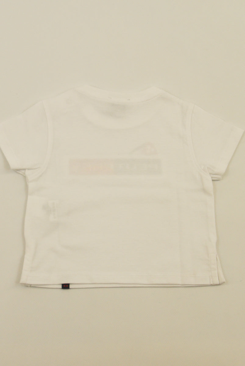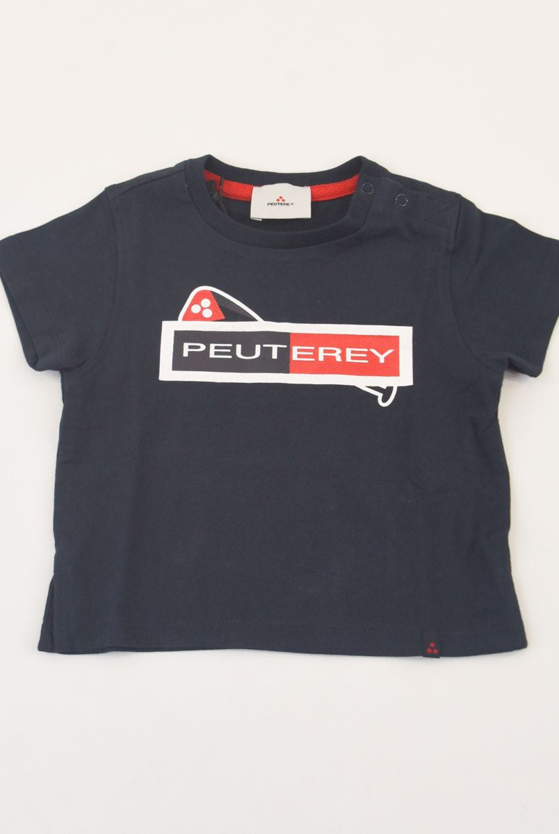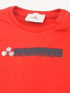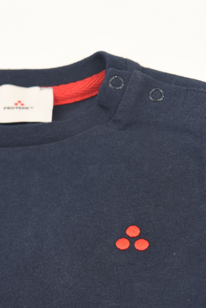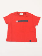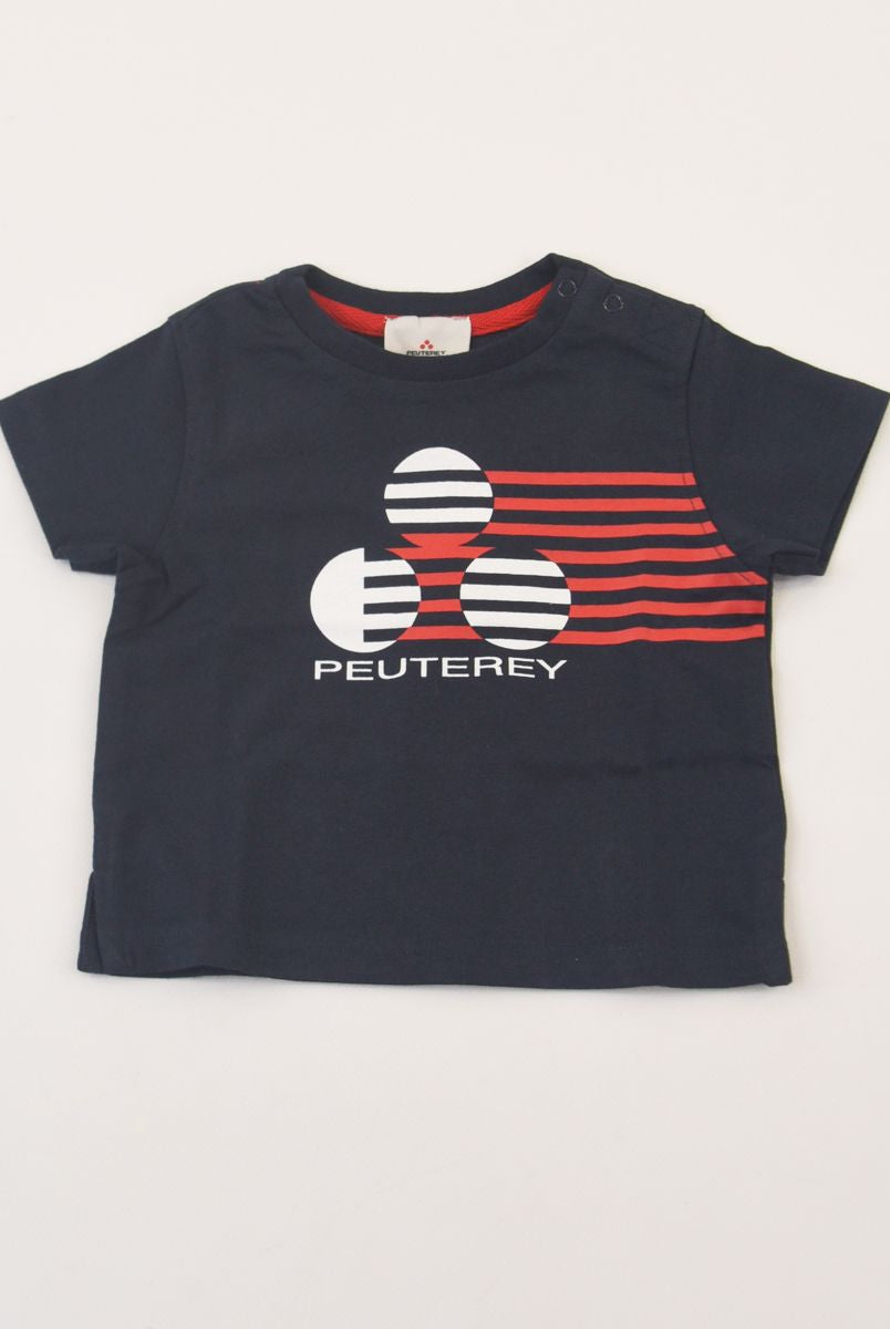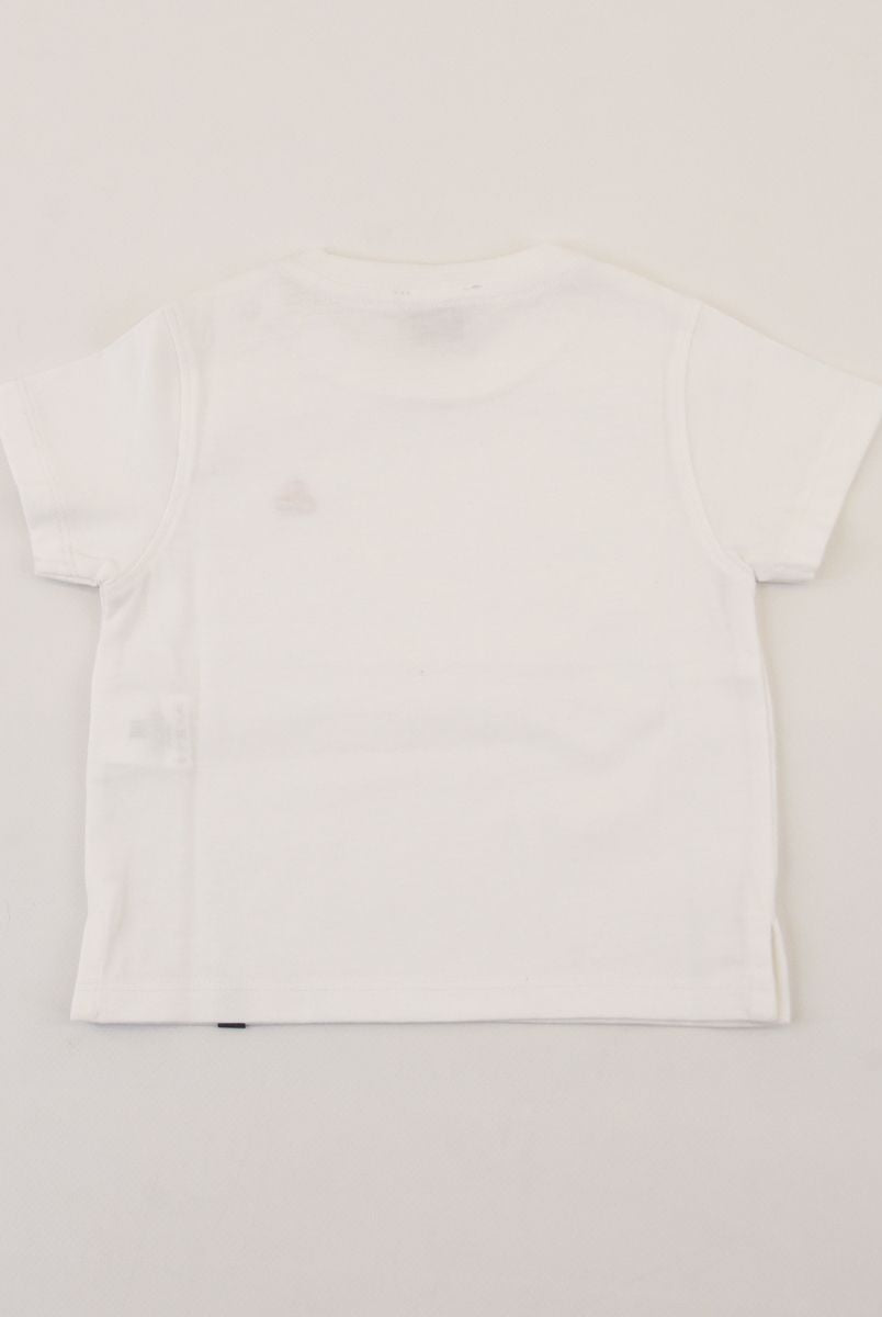 Kurzärmliges T-Shirt mit Rundhalsausschnitt und Logo-Print vorne. Druckknöpfe an der Schulter