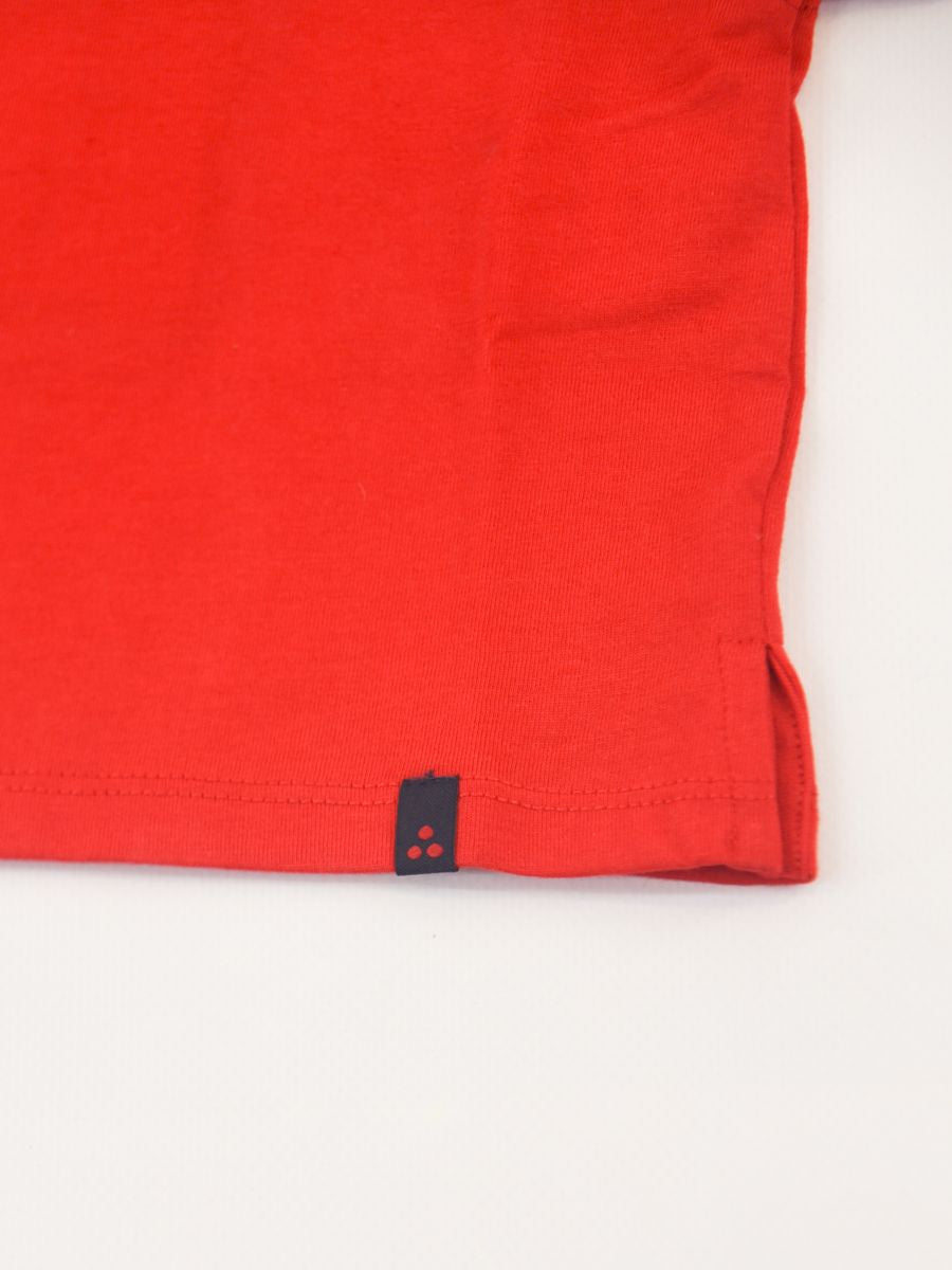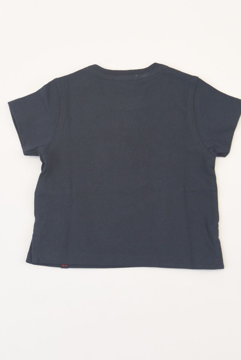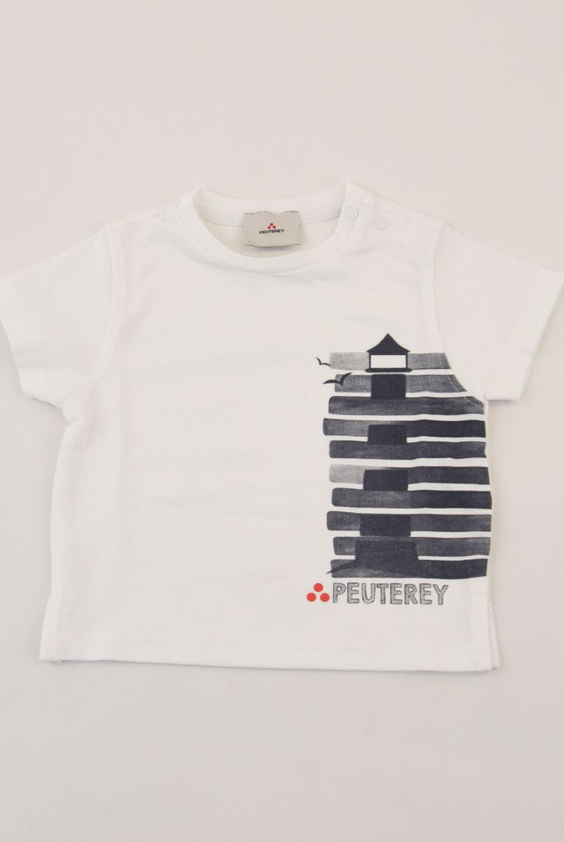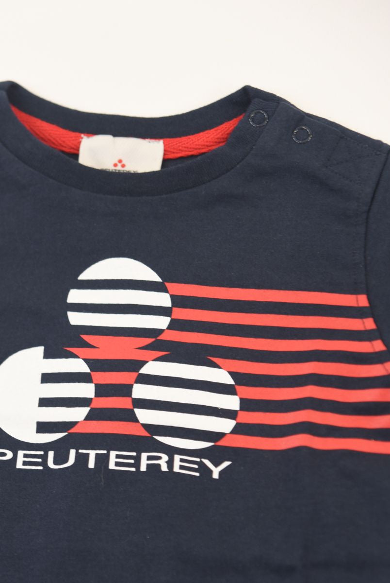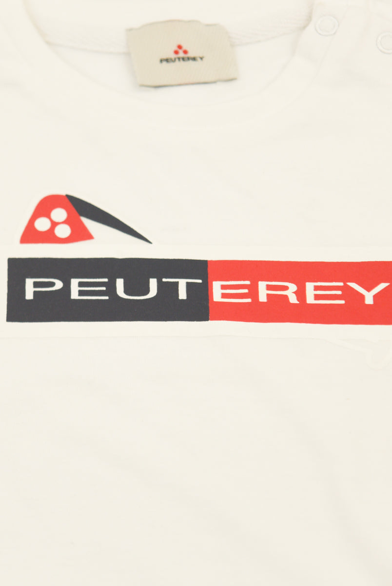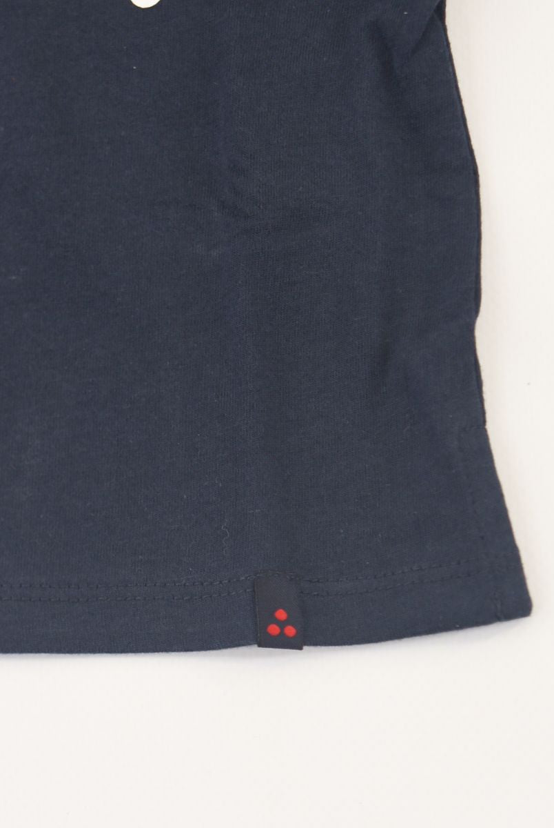 Kurzärmliges T-Shirt mit Rundhalsausschnitt und Logo-Print vorne. Druckknöpfe an der Schulter