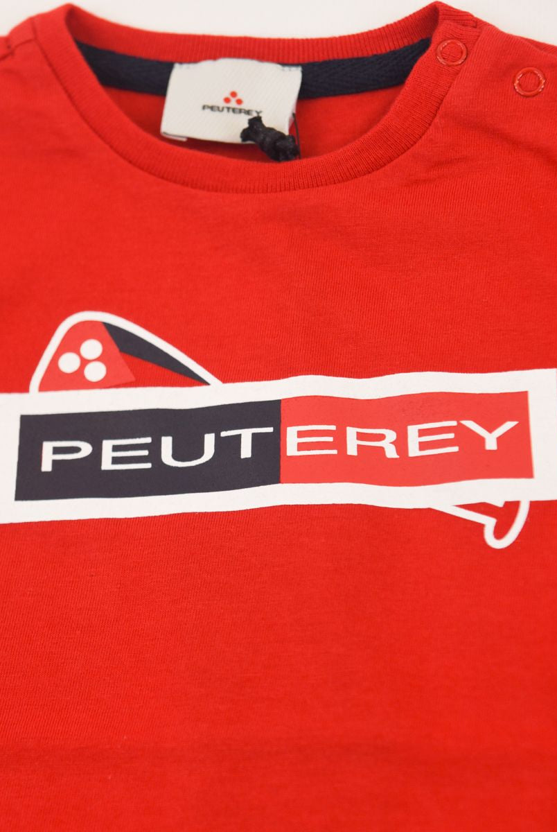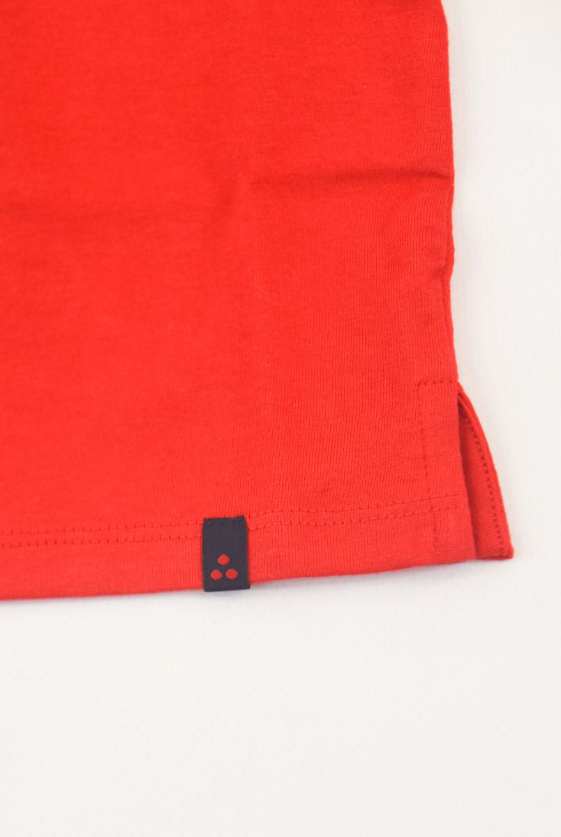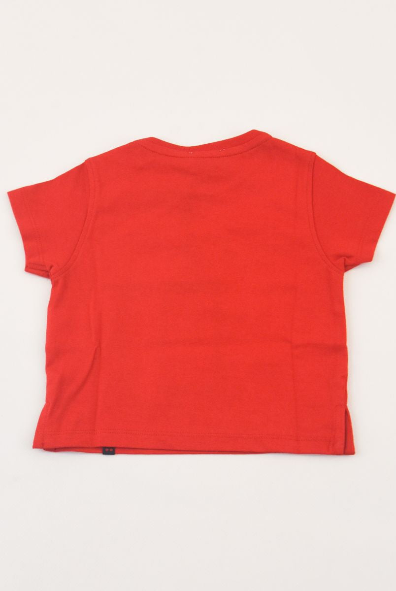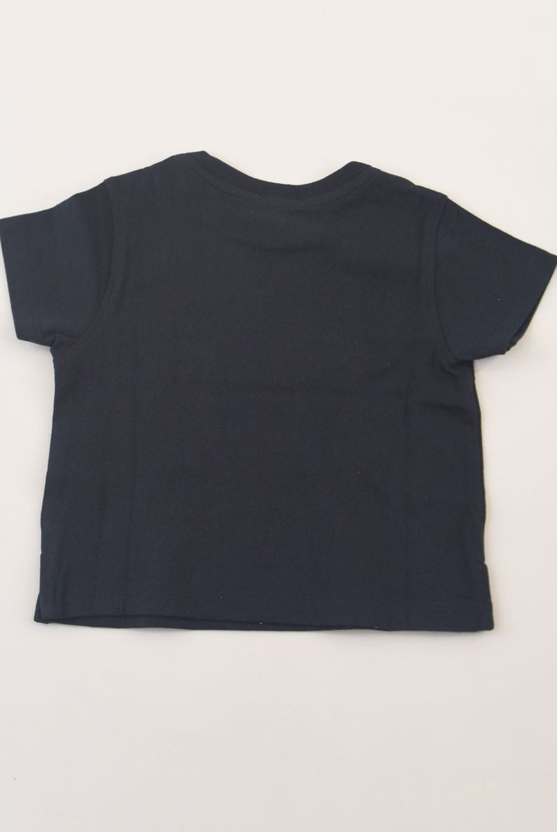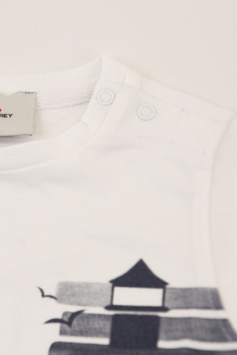 Kurzärmliges T-Shirt mit Rundhalsausschnitt und Logo-Print vorne. Druckknöpfe an der Schulter