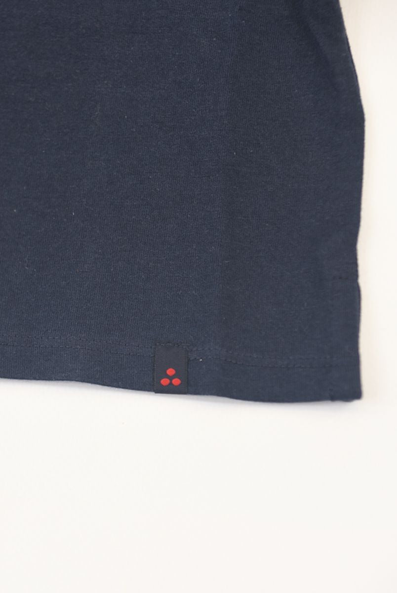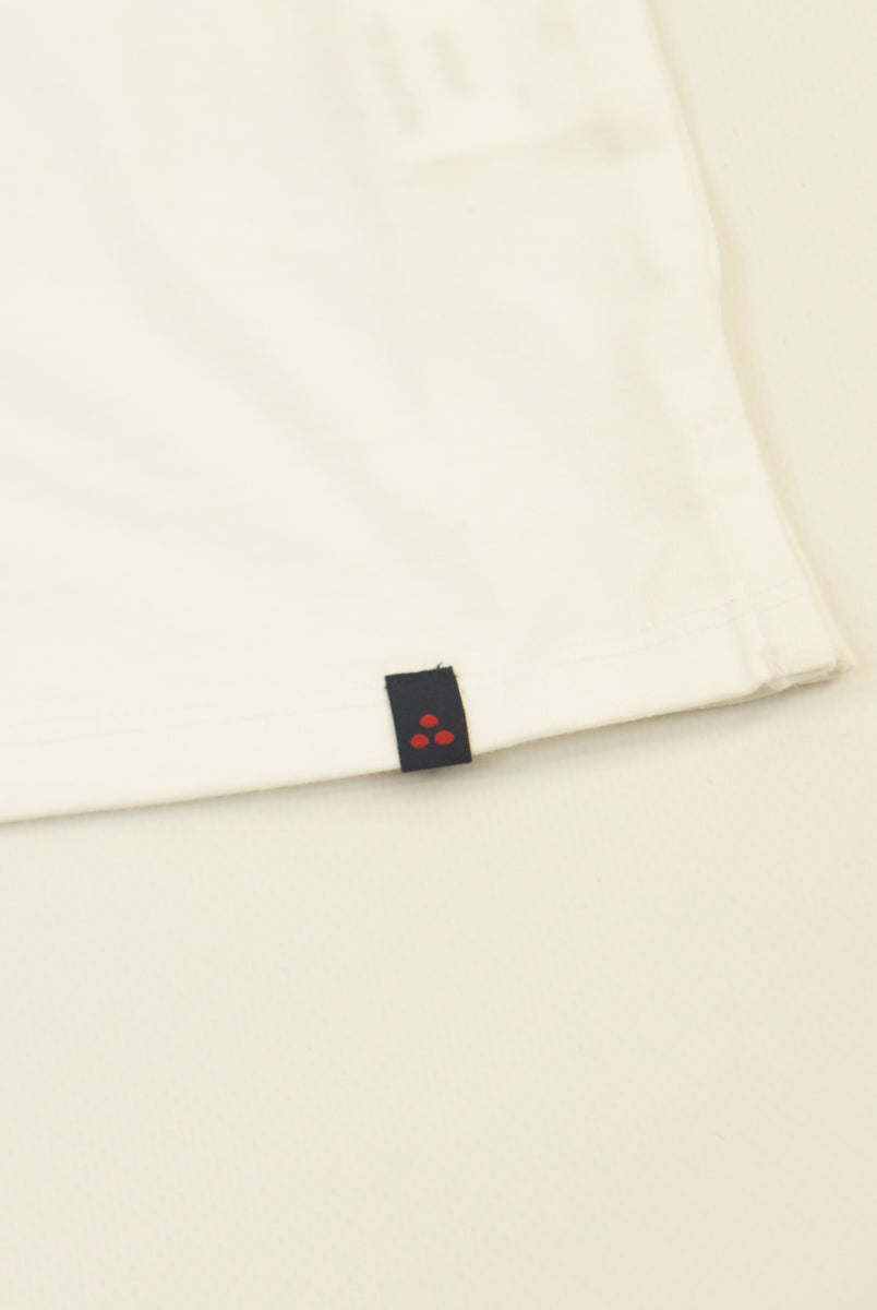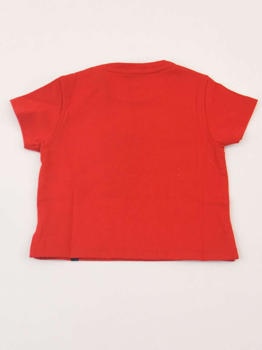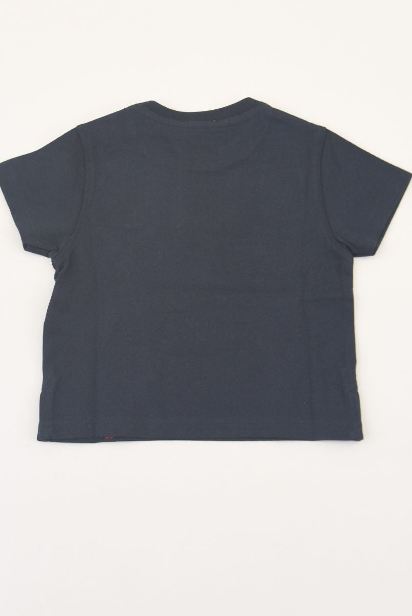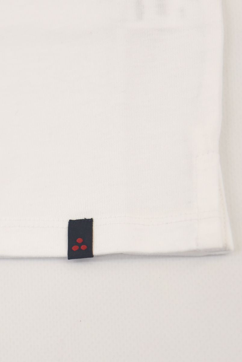 Kurzärmliges T-Shirt mit Rundhalsausschnitt und Logo-Print vorne. Druckknöpfe an der Schulter