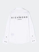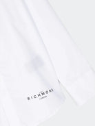 Klassisches einfarbiges Hemd mit verdecktem Knopfverschluss und Logo-Aufdruck auf der Unterseite und Maxi-Hemd auf der Rückseite