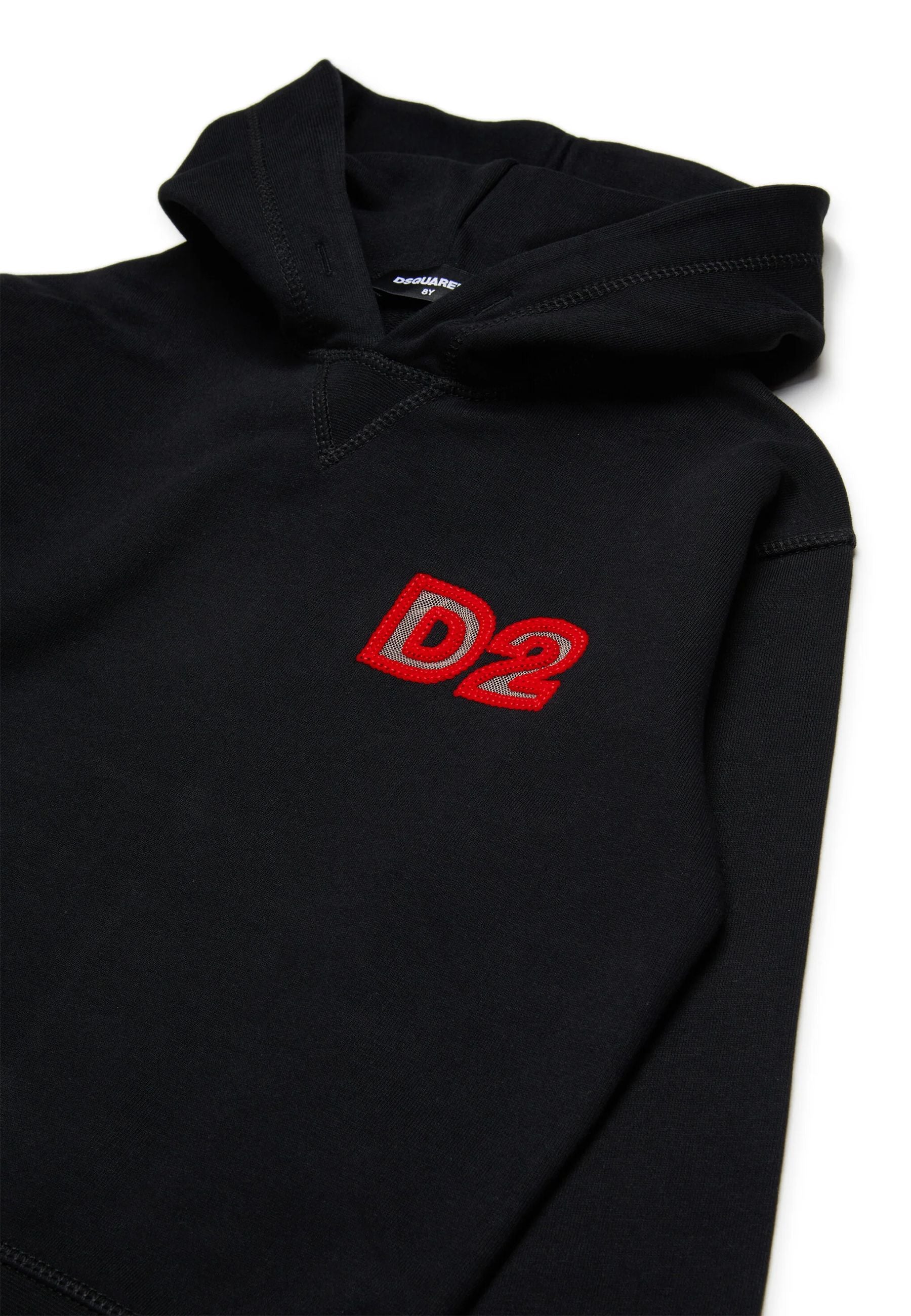 Dsquared2 Felpa Nera Cappuccio 'd2 Lato Cuore Rosso