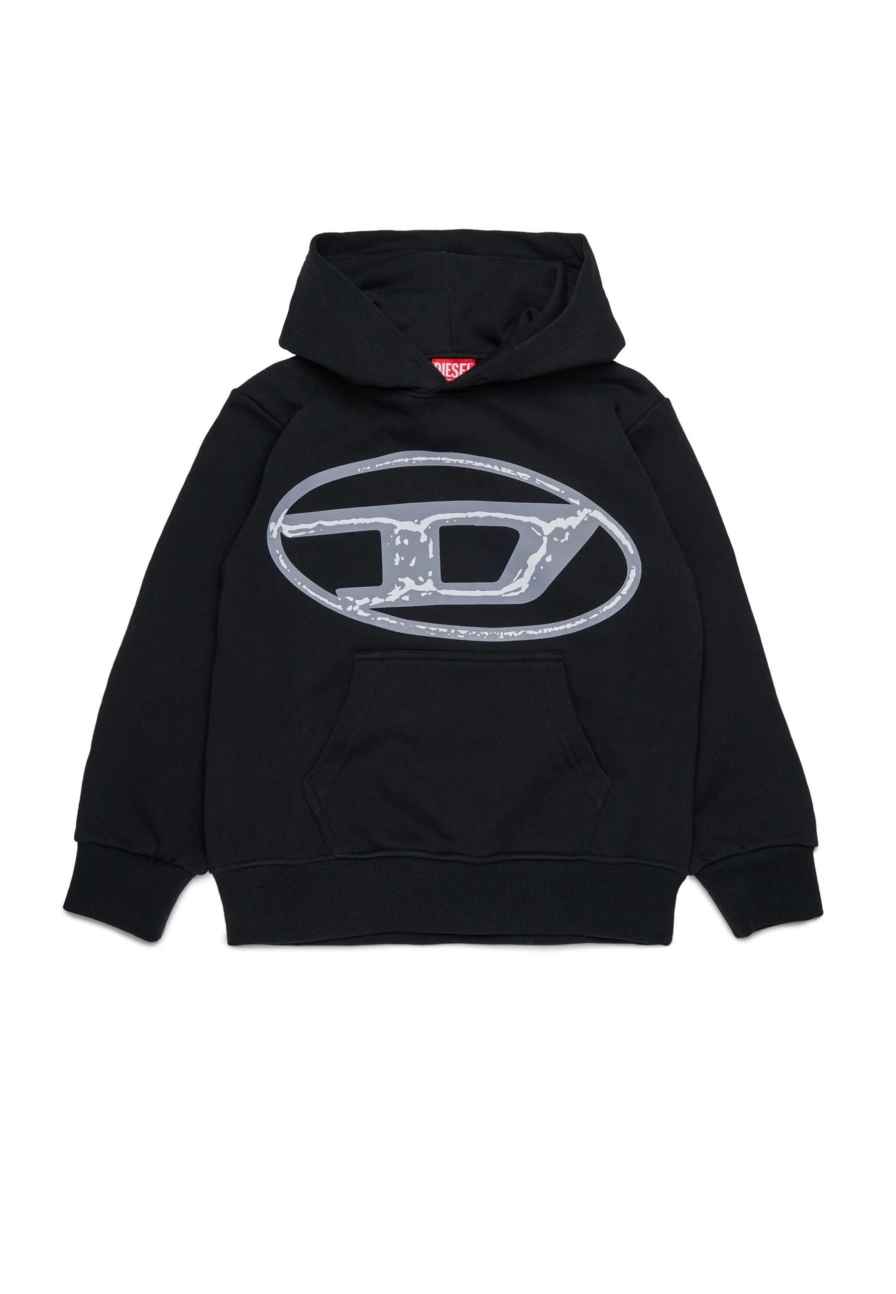Diesel Felpa con Cappuccio Nero Logo Oval D