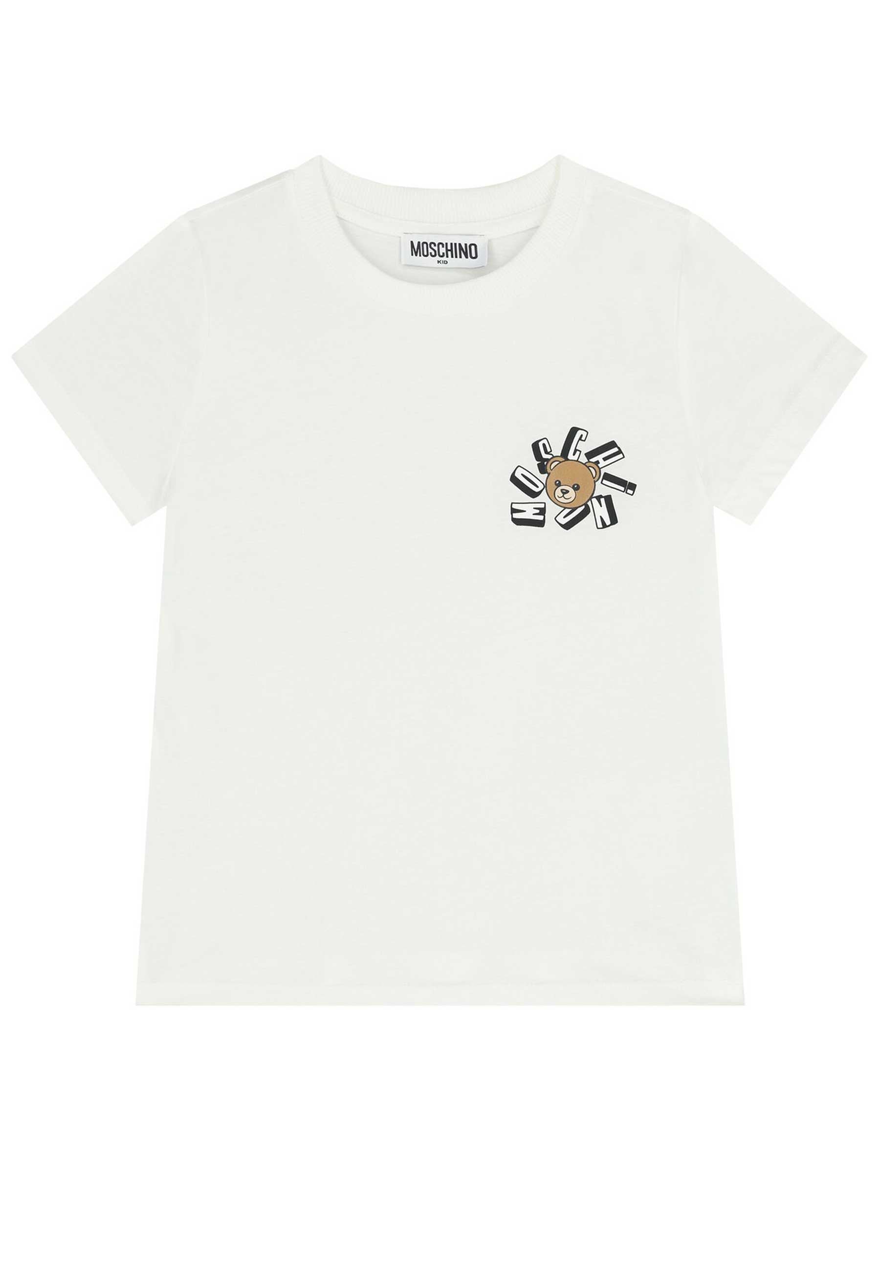 T-shirt Moschino Kids firmata dal brand iconico realizzata in puro cotone morbido e confortevole con maniche corte e girocollo a costine elegante e pratica Decorata con la celebre stampa Teddy Bear e il logo originale sul petto per uno stile unico e giocoso Perfetta per i piccoli trendsetter Bimbivip ti offre questo capo esclusivo garantito originale al 100 Sicurezza qualità e autenticità sono al centro della nostra esperienza di acquisto Affidati al partner storico autorevole e riconosciuto in Europa per famiglie che cercano solo il meglio Shopping sereno trasparente e gratificante con prodotti selezionati dai nostri specialisti niente falsi solo valore autentico