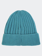 Einfarbige Mütze aus geripptem Strickgarn mit Bündchen und Stoffaufnäher vorne mit Logo auf dem Stoff. Passend für einen Kopfumfang von 52 cm bis 54 cm