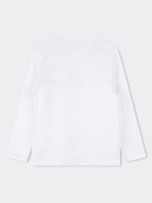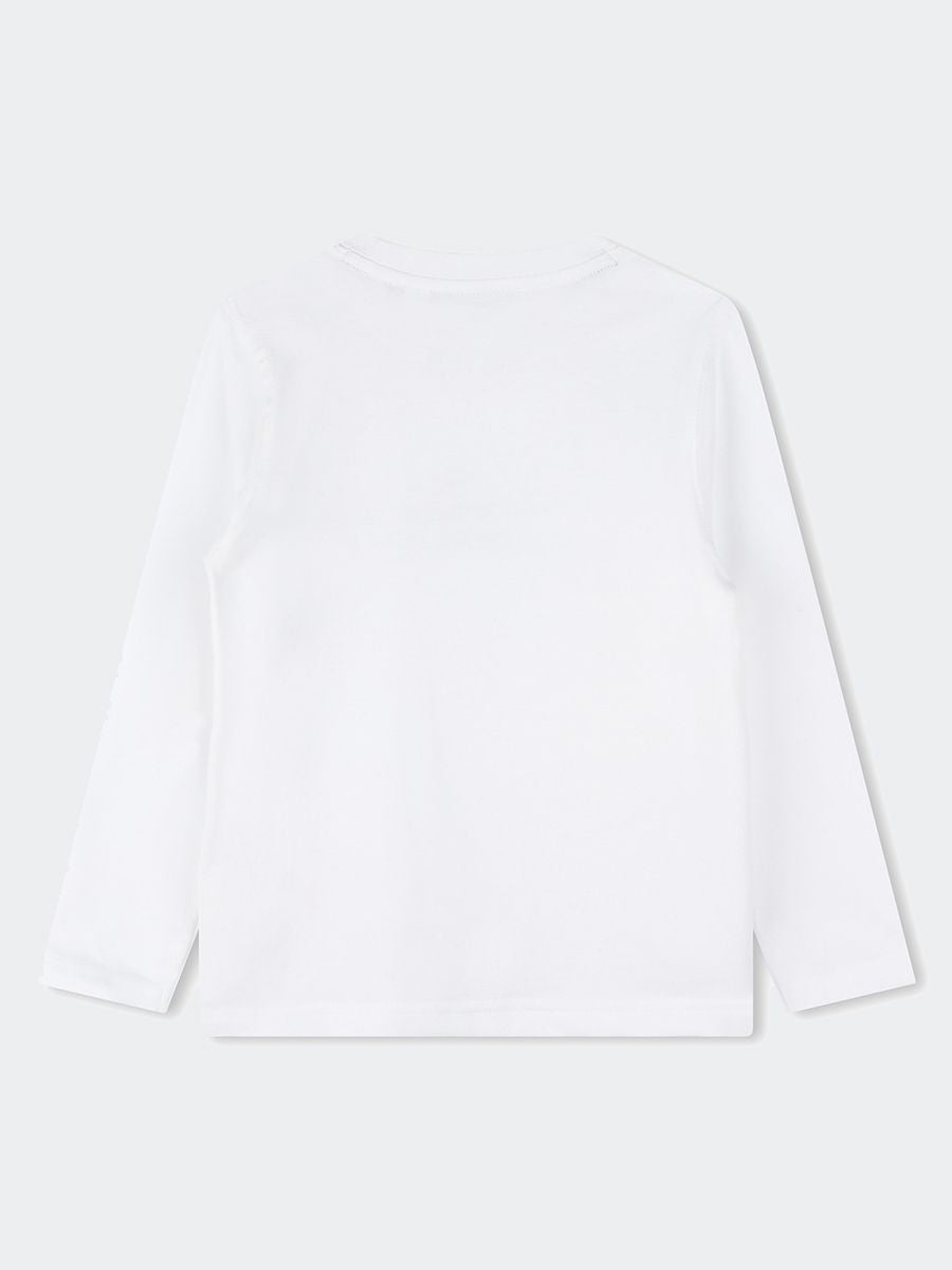Einfarbiges Langarm-T-Shirt mit Rundhalsausschnitt. Frontdruck mit Logo mit ikonischem stilisierten Schuh