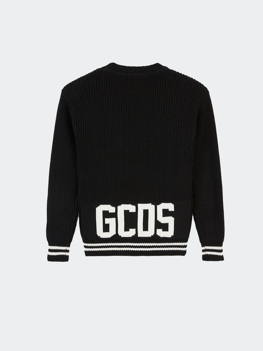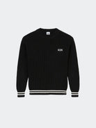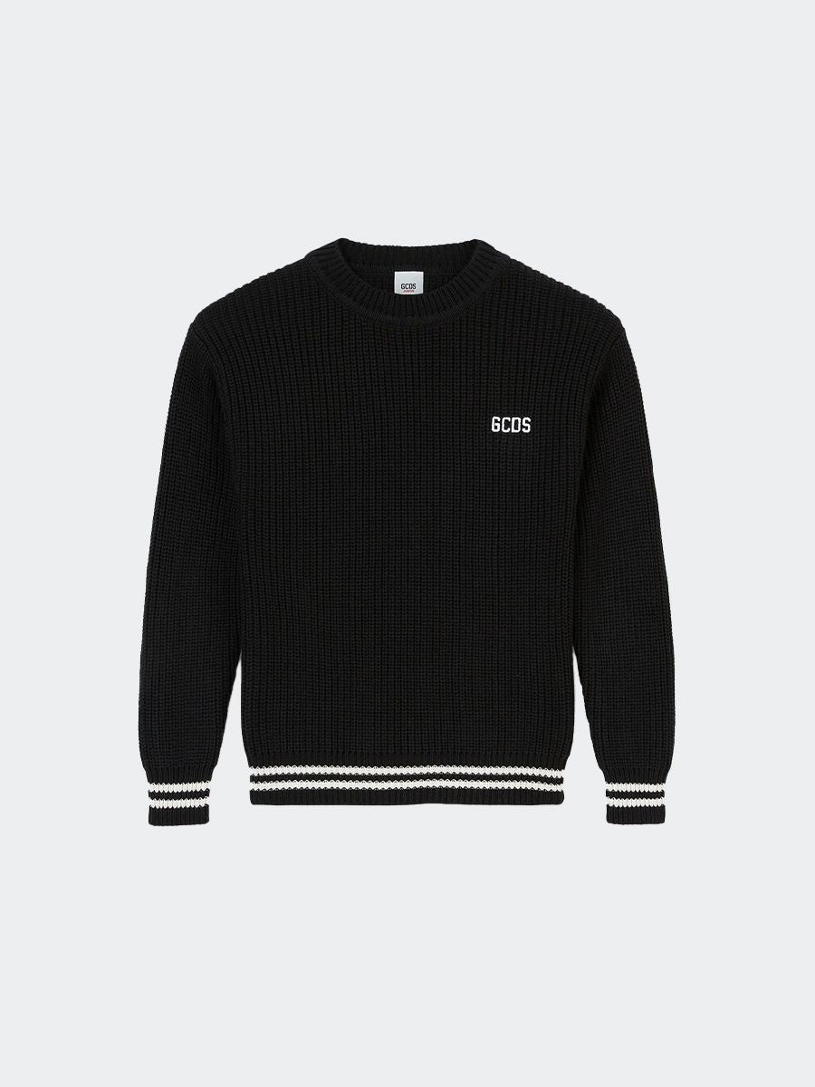 Einfarbiger, locker gestrickter Langarmpullover mit Rundhalsausschnitt und kontrastfarbener Stickerei