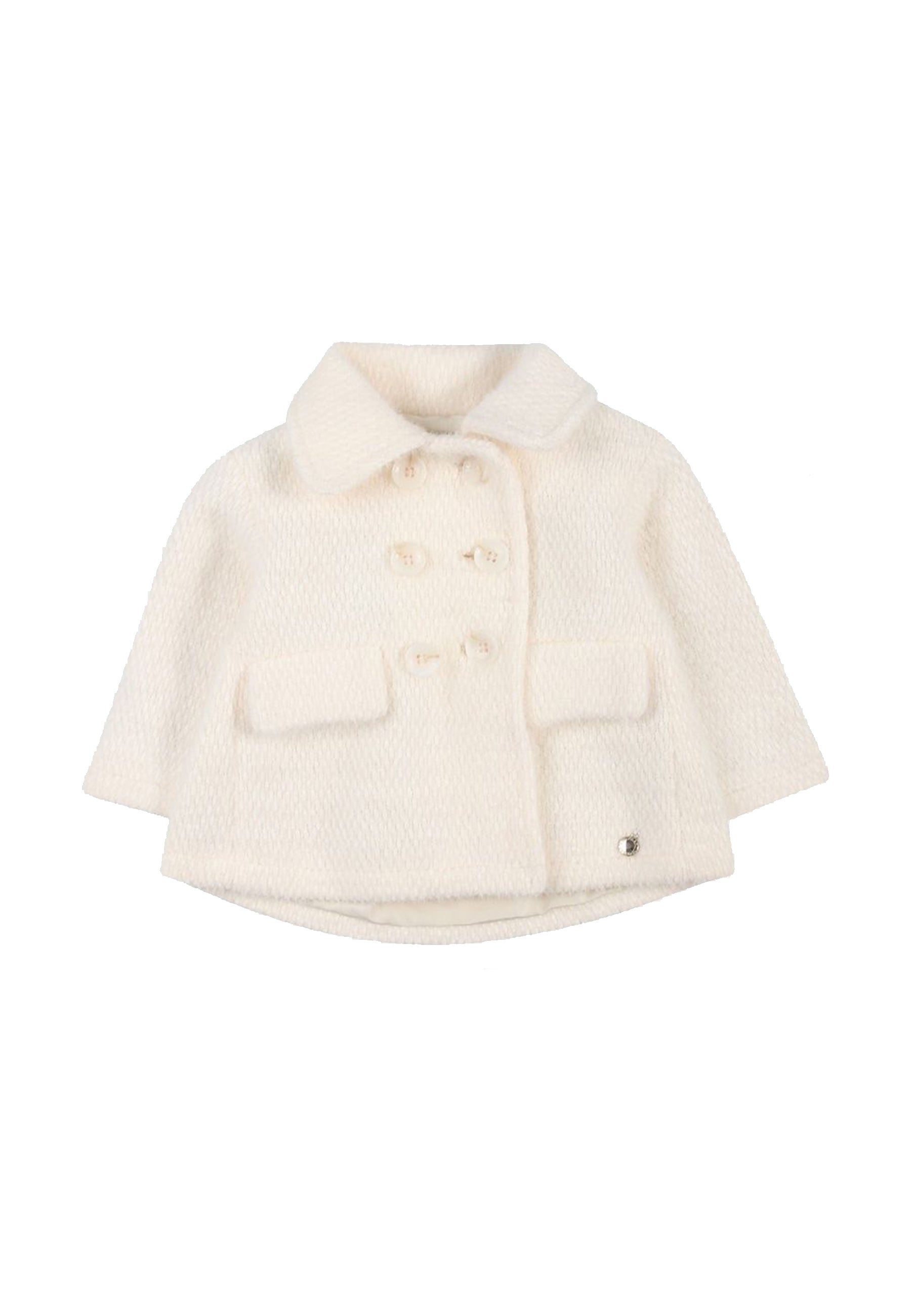 Klassischer einfarbiger Mantel. Knopfverschluss und Vordertaschen mit Logo