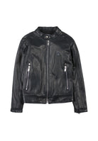 Einfarbige Öko-Lederjacke mit durchgehendem Reißverschluss, Rundhalsausschnitt und Taschen. Seitliches Herzlogo auf der Rückseite aufgestickt