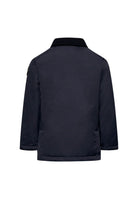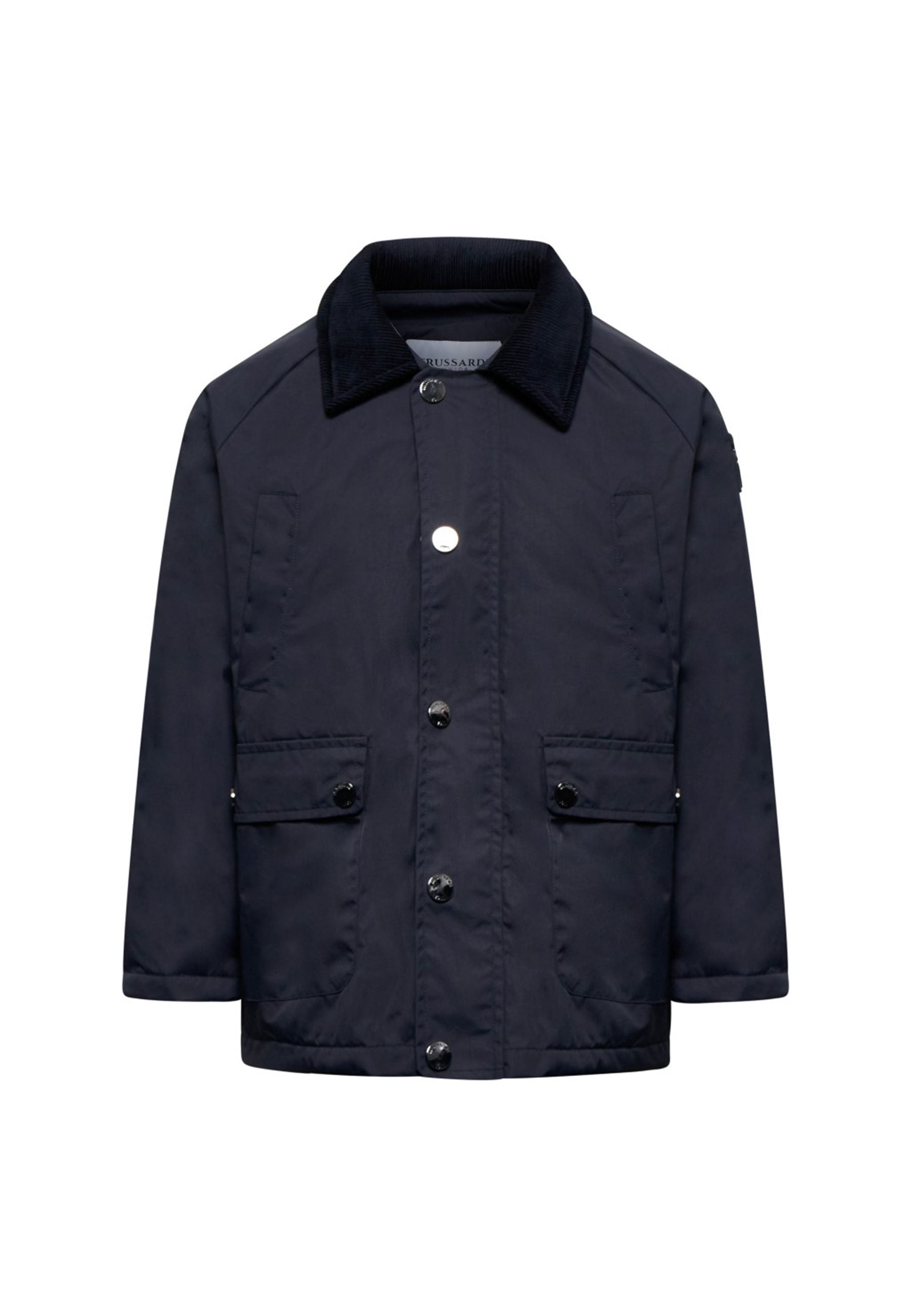 Giubbino bambino tinta unita blu con zip firmata TRUSSARDI realizzato in 100% poliestere un capo elegante e funzionale che unisce lo stile di un parka alla praticità di un impermeabile classico con collo a camicia in velluto apertura frontale tasche superiori aperte e inferiori con patta e bottone logato spacchi laterali per garantire morbidezza e libertà di movimento un modello raffinato versatile e confortevole distribuito da Bimbivip partner storico affidabile e riconosciuto nel panorama europeo dell’e-commerce e retail punto di riferimento per famiglie alla ricerca di qualità originalità e garanzia di marchi prestigiosi per un’esperienza d’acquisto sicura soddisfacente e appagante Seguire attentamente le istruzioni di lavaggio riportate sull'etichetta all'interno del capo. made in CINA composizione 100% POL