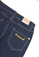 Stretch-Jeans in dunkler Waschung mit Metallknopf-Stickerei