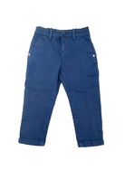 Elegante Freizeithose aus gewaschenem Denim. Chino-Modell mit Silikon-Logo-Patch