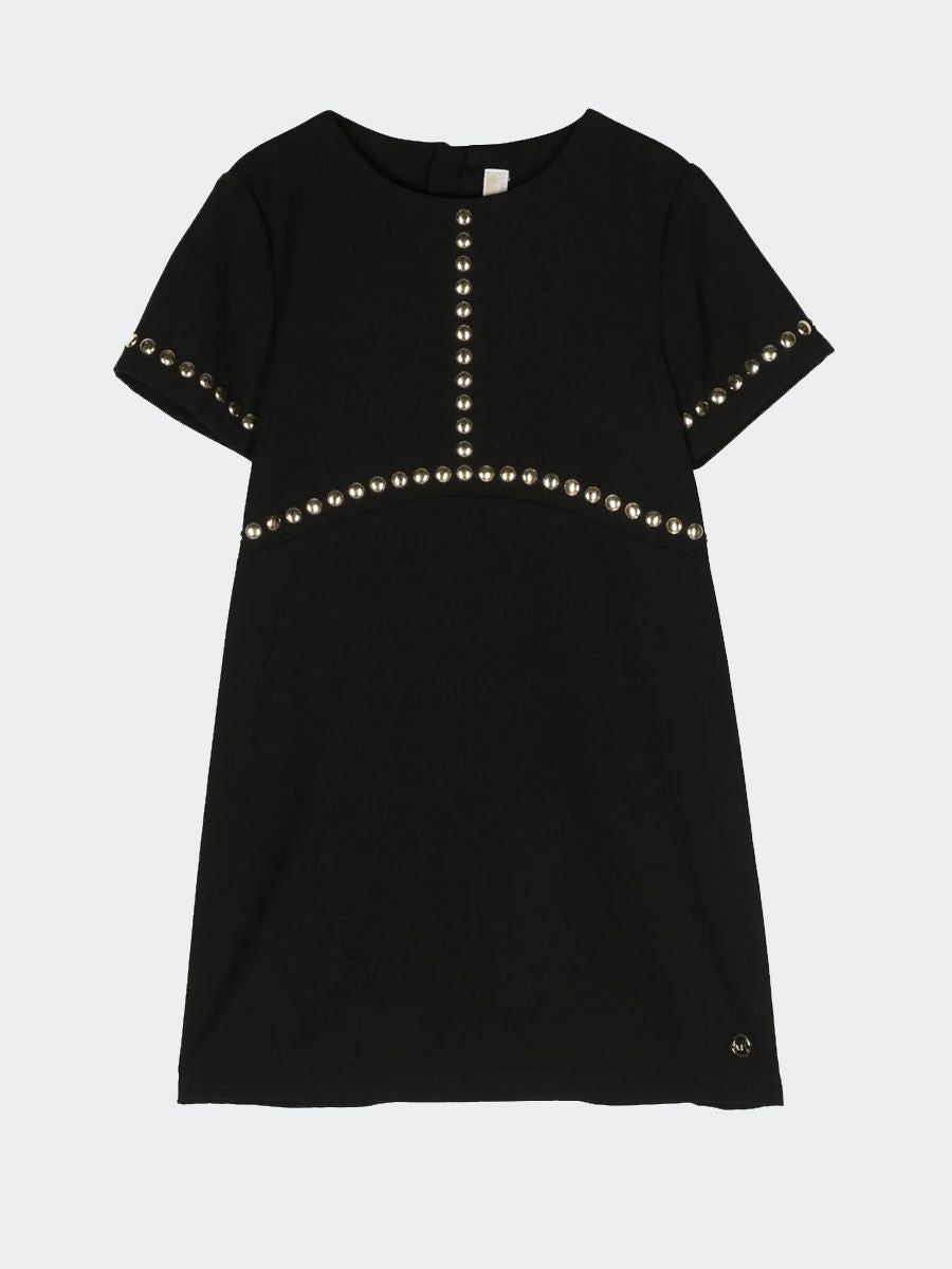 Kleid mit passendem Mikro-Logo-Muster auf welligem Stoff. Reißverschluss hinten