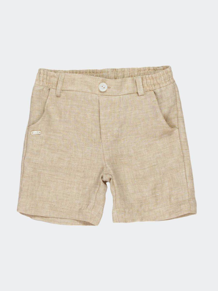 Bermuda in Lino con tasche frontali e bottone e placchetta Logo. Girovita elastico