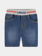 Bermudashorts aus Stretchdenim mit Vordertaschen und geripptem Gummizug mit aufgedrucktem Logo