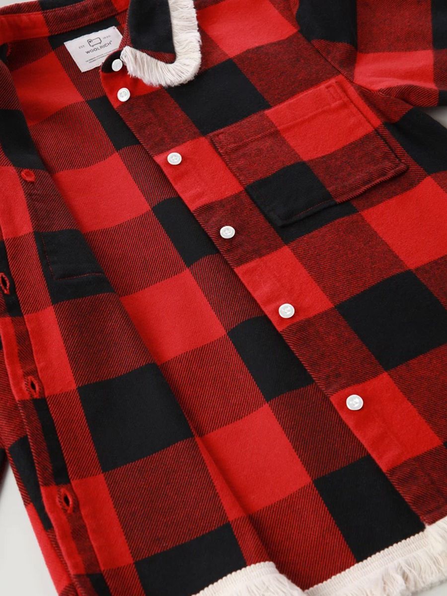 Übergroßes Hemd aus mittelschwerem Flanell mit spitzem Kragen und mit Rouge verziertem Saum. Brusttaschen und Knöpfe auf der Vorderseite. Originalmotiv aus dem Woolrich-Archiv.