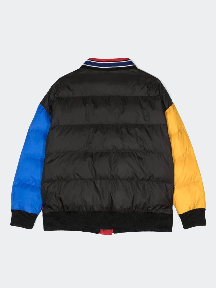 Die wattierte Jacke DSQUARED2 KIDS vereint Stil und Zweckmäßigkeit auf hervorragende Weise. Das schwarze und mehrfarbige Farbblockdesign ist modern und lebendig. Der Logo-Patch an der Seite sorgt für ein einzigartiges Detail. Der stilvolle V-Ausschnitt und der Knopfverschluss vorne sorgen für eine einfache Handhabung. Die langen Ärmel, Bündchen und der gerippte Saum aus Wollmischstrick bieten eine bequeme und warme Passform. Die Wattierung aus Daunenimitat speichert die Wärme gut. Es besteht zu 100 % aus Polyester, ist langlebig und pflegeleicht. Die beiden seitlichen Reißverschlusstaschen eignen sich zum Verstauen kleiner Gegenstände oder zum Wärmen der Hände. Diese Jacke ist in den Größen Junior und Teen von 12 bis 16 Jahren erhältlich und eignet sich perfekt für junge Leute, die modisch sein möchten. Ein vielseitiges, hochwertiges Kleidungsstück für kühle Tage